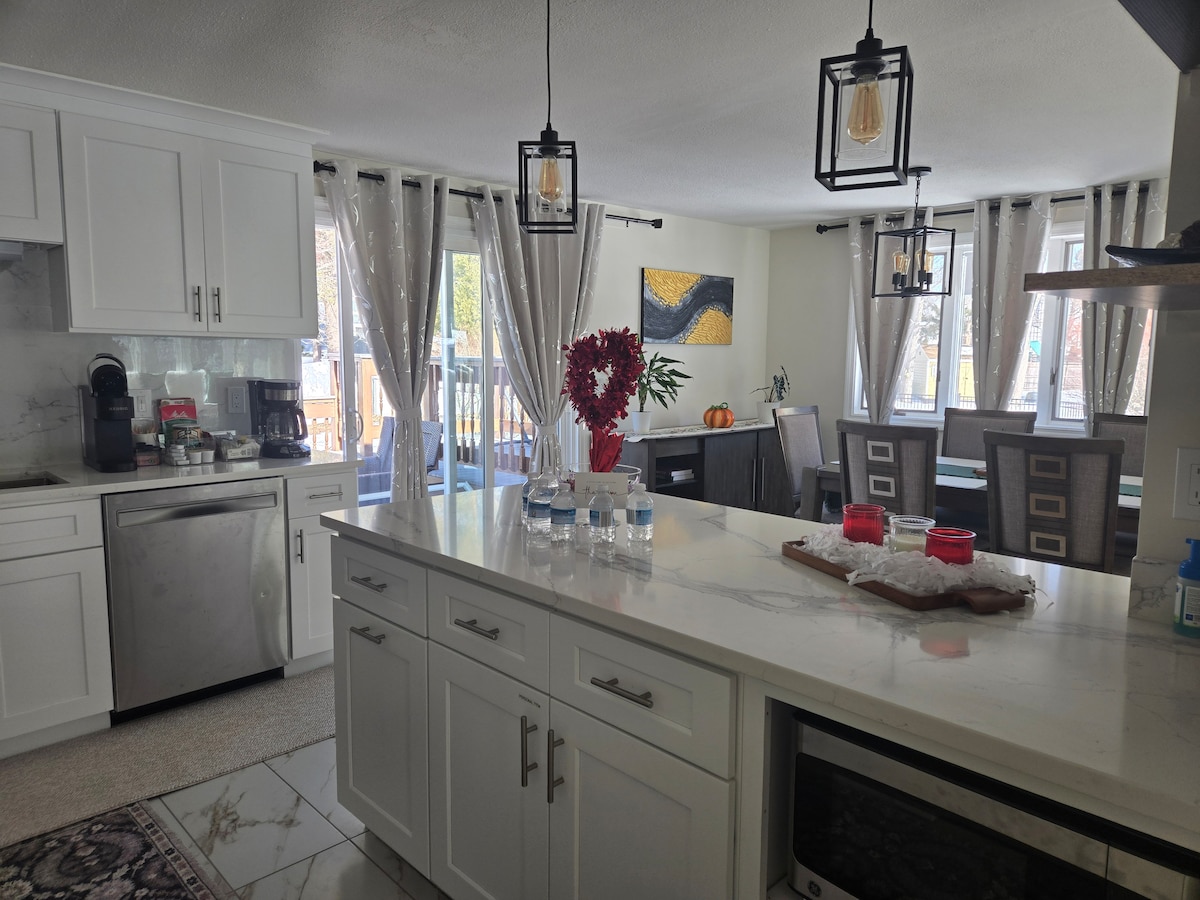 Construimos esta casa de 2 niveles hace 6 años y se encuentra en Washington St, en el distrito histórico de la ciudad. La casa está apartada de la calle con un largo camino de entrada de estilo rural. La diseñamos con grandes ventanales en todas las habitaciones, dando la bienvenida a la luz del sol y a un entorno tranquilo. Acceso a garaje limpio y vacío para almacenamiento (sin estacionamiento). No tenemos artículos personales en el nivel de invitados: ¡todos los armarios y aparadores están vacíos y son tuyos para su uso completo! El coanfitrión reside en la suite de entrada independiente inferior. Nada compartido.