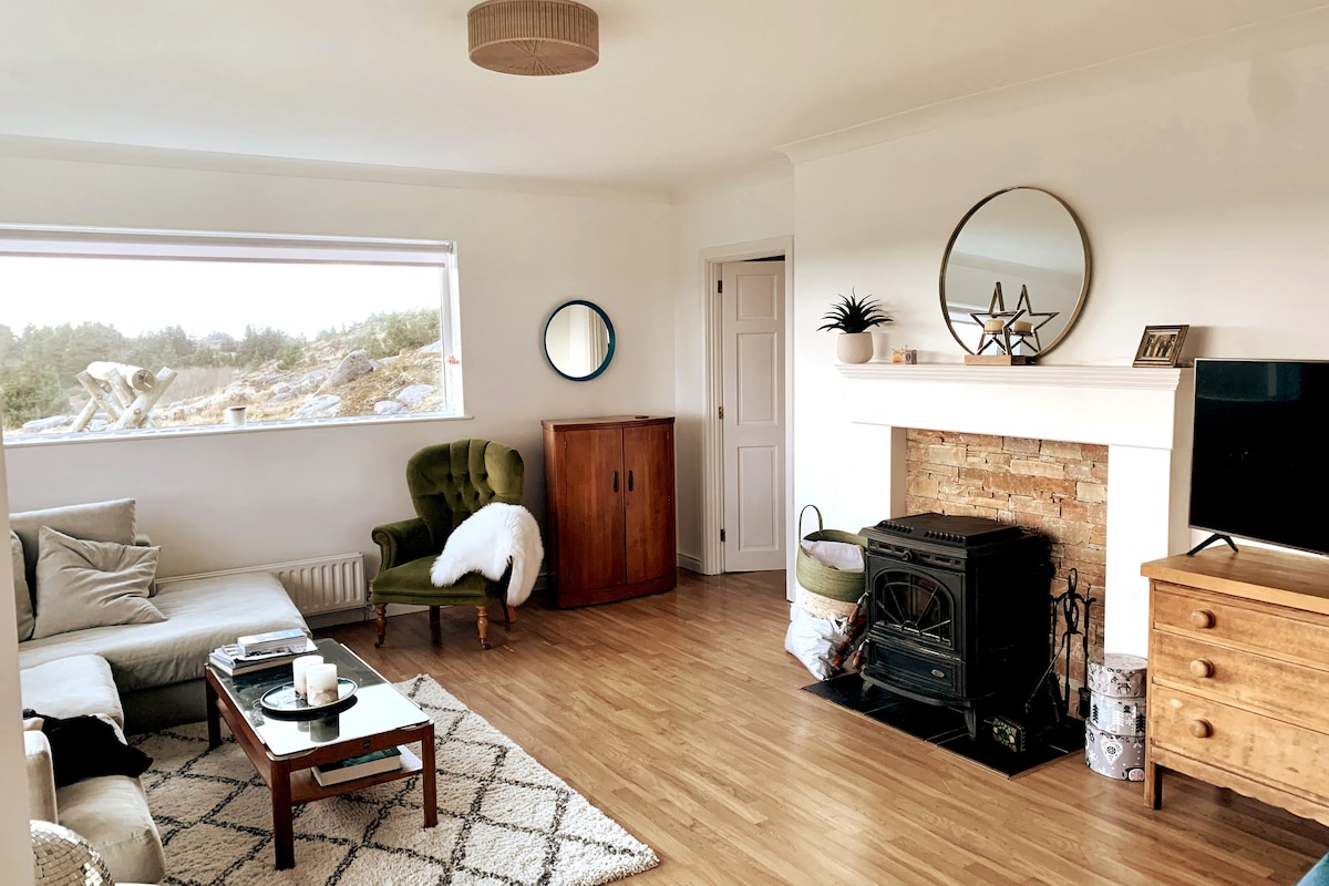 Take it easy in our authentic open plan log cabin. Come rest, relax and unwind in the heart of the Donegal Gaeltacht. Enjoy stunning views of the Seven Sister mountains whilst relaxing in the hot tub, Robes & Slippers provided. Only a short 3 minute drive to Magheroarty beach where you can avail of island tours and ferry services to local islands. Glenveagh National Park, Errigal & Muchish Mountains, Ards Forest Park and Croilthlí distillery are all within a 30 minute drive.