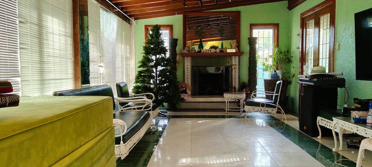 Enjoy mountain views and crisp fresh air in this cozy, stylish and charming home 10 minutes from restaurants and attractions such as Camp John Hay, Mines View Park, The Mansion House and others. Perfect for families and groups of friends, this pet-friendly and wheelchair-accessible home offers an indoor fireplace, 2 outdoor fire pits, 4 bedrooms with bathrooms, a full kitchen, alfresco dining, front and back yards; cableTV, karaoke machine, & fast internet for those who wish to work from home.