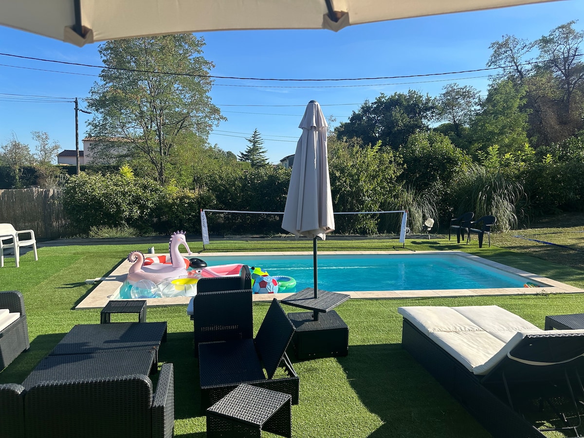 Ce logement paisible offre un séjour détente pour toute la famille. Une piscine au sel, avec dome vous offrira une baignade très agréable. Vous pourrez vous détendre sur le hamac ou le transat. Il s'agit du rez de jardin d'une villa. Nous habitons au premier étage, mais nous n'y serons pas pendant votre séjour. Vous pourrez profiter du calme et du soleil de la région avec vue sur les Cevennes. ATTENTION, pensez à prendre vos draps et serviettes, car ils ne sont pas inclus dans la réservation.