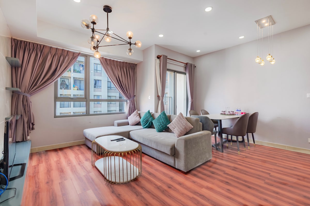 • Ciudad panorámica de 180º desde tu ventana • Mercado Ben Thanh más cercano (500 m), centro de la ciudad (5 minutos a pie), calle Bui Vien (300 m). - Espaciosa con 2 dormitorios y 2 baños. • Dormitorio principal con baño privado. • Ropa de cama y toallas limpias • Piscina en la azotea dentro del edificio. • Gimnasio y piscina gratuitos. Ahorra el precioso tiempo de viaje que tienes en Vietnam alojándote en el corazón de la ciudad de Ho Chi Minh.