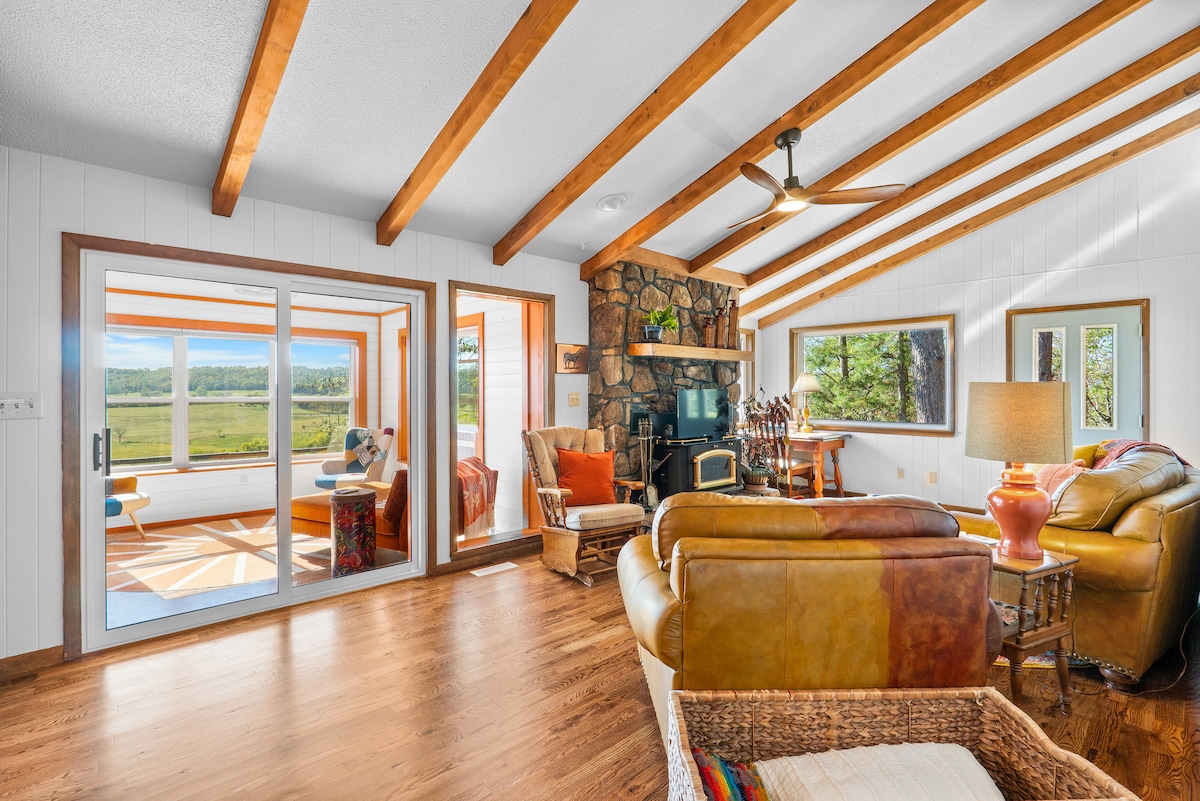 Resting on the banks of the White River, this quiet & peaceful cabin offers world renown trout fishing, mountain views, & gorgeous sunsets! Located just minutes from the charming city of Mountain View, spend your evenings listening to locals playing music on the square or visiting the Ozark Folk Center. Come sit for hours on the covered porches or launch your boat less than 1/4 mile down the road! This Ozarks cabin offers the perfect place to unwind and experience the charm of Mountain View!