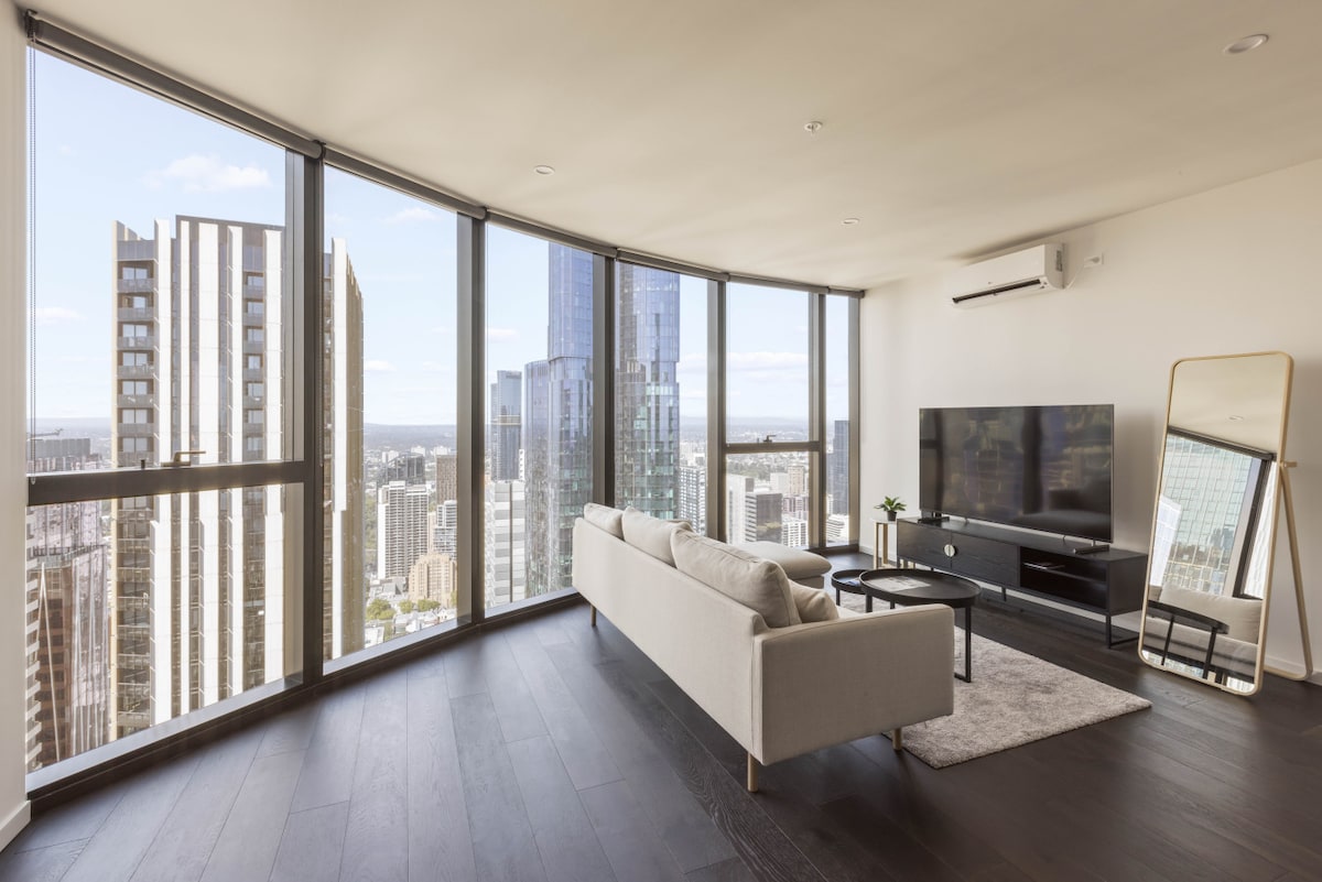 Gran apartamento 1B1B en el piso 45F ubicado en el corazón del distrito financiero, decorado con lujo con jardín de invierno, increíbles vistas al río en la ciudad, especialmente brillantes vistas nocturnas, ya que está en el piso alto. Lugar agradable y acogedor para alojarse, cerca de la estación central de Melbourne, Victoria Market, supermercados, tranvías, restaurantes, cafeterías, etc. Una amplia gama de restaurantes y hoteles de alta categoría. Se ofrecen compras, brunch y entretenimiento. Wifi de alta velocidad gratuito. TV con Netflix. Aprovecha al máximo los servicios como el gimnasio y las piscinas.