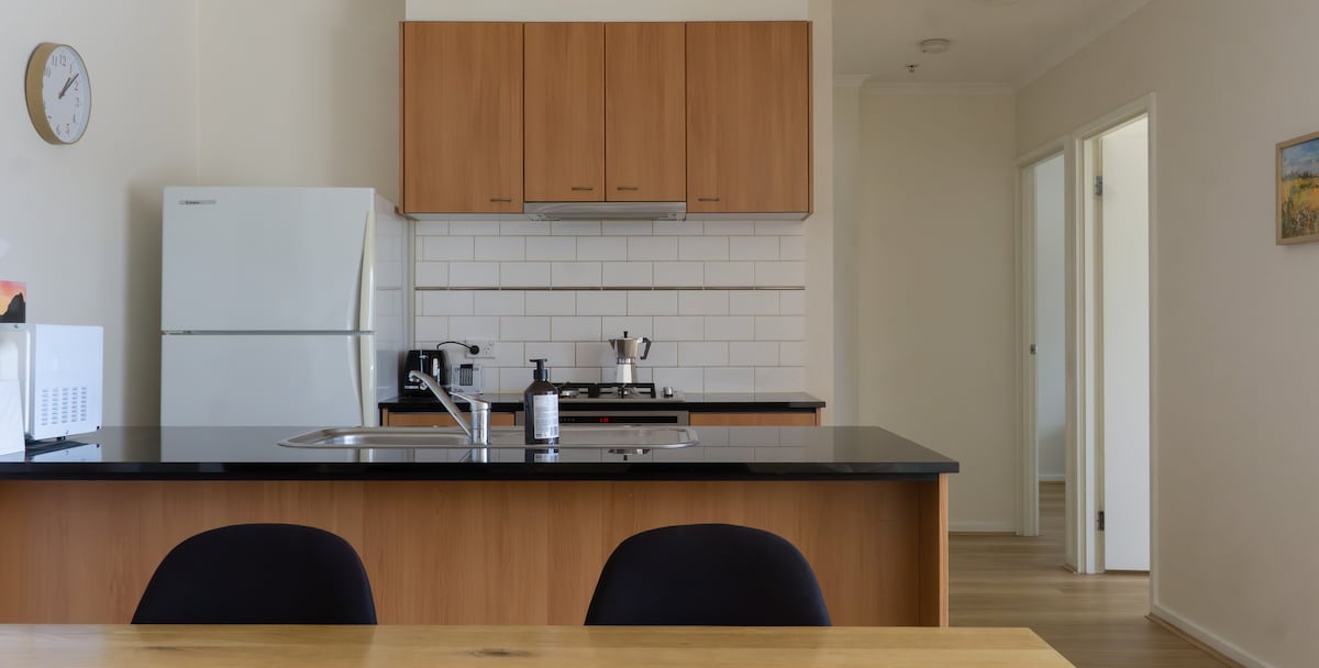 Departamento empapado en el sol con unas vistas espectaculares de la ciudad, ¡y tu punto de partida para llegar a casi cualquier lugar de Melbourne! Los tranvías te llevan al distrito financiero de Melbourne, al moderno Brunswick, a las playas de Port Melbourne, St Kilda y Middle Park, o incluso a Albert Park. Pasea por Southbank para disfrutar de varios sitios a lo largo del camino: Crown Casino, Fed Square y los Jardines Botánicos. Si estás listo para una caminata más larga, ¡incluso puedes llegar a los estadios deportivos! Más cerca de casa: ¡South Melbourne Market es una visita obligada!