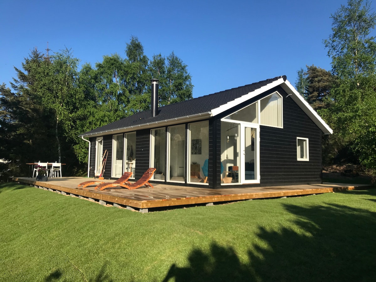 Casa de verano única y familiar. La casa consta de dos dormitorios y una cocina/sala de estar grande y espaciosa. La terraza es grande y está rodeada de un jardín cercado, adecuado para perros y niños. El jardín se ha adentrado en el bosque con caminos que se recorren regularmente. La casa se calienta con una chimenea, estufa de leña y bomba de calor. Hay una lavadora y un lavavajillas. Arresø está a 5 minutos a pie de la cabaña y a 10 minutos está el restaurante Tinggården. La zona se caracteriza por la naturaleza y las casas de campo y hermosas playas a poca distancia en bicicleta.