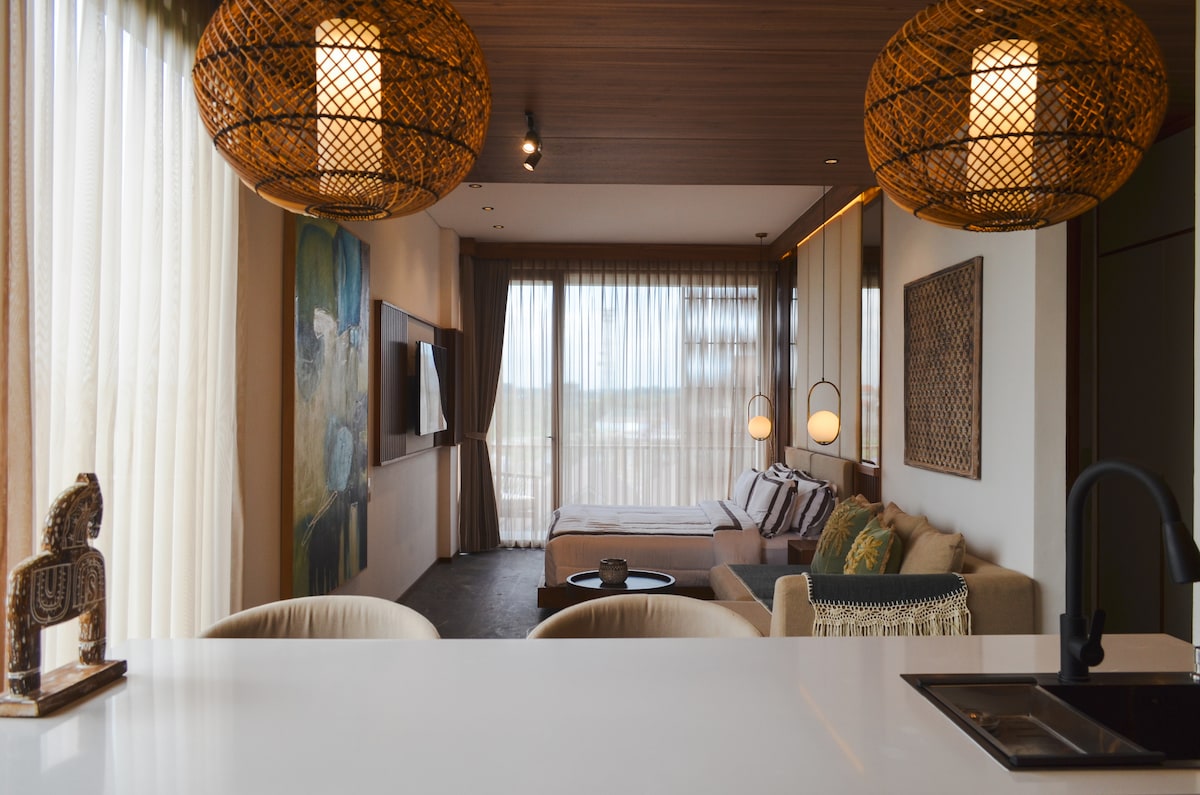 Te damos la bienvenida a Coco Lifestyle Residence A2 | Co-Working • ¡Sauna y baño de hielo! Tu retiro de ensueño en Seseh comienza aquí. Coco Lifestyle Residence es un moderno complejo de estilo de vida con 3 unidades de villas privadas y 14 unidades de lujosos apartamentos de un dormitorio diseñados para la comodidad y el estilo. Ubicado a solo 5 minutos de la playa de Seseh y a 10–15 minutos de Canggu, disfrutarás de un fácil acceso a cafés, restaurantes y vida nocturna, mientras te hospedas en un entorno tranquilo y relajado.