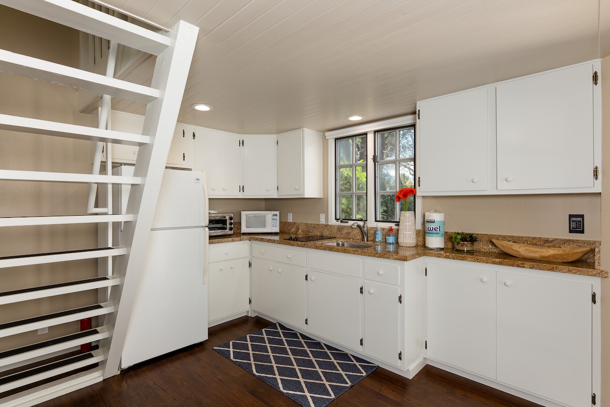 This charming, quiet 2-story cottage includes a bedroom, bathroom, kitchen and spacious common room with a couch, working desk, fast wifi and a large flat-screen TV. Located in a family-friendly neighborhood in Menlo Park, you'll enjoy your own private space with a separate entrance and tranquil, sunny patio area. The cottage is nestled in the rear of our backyard, detached from the main house.