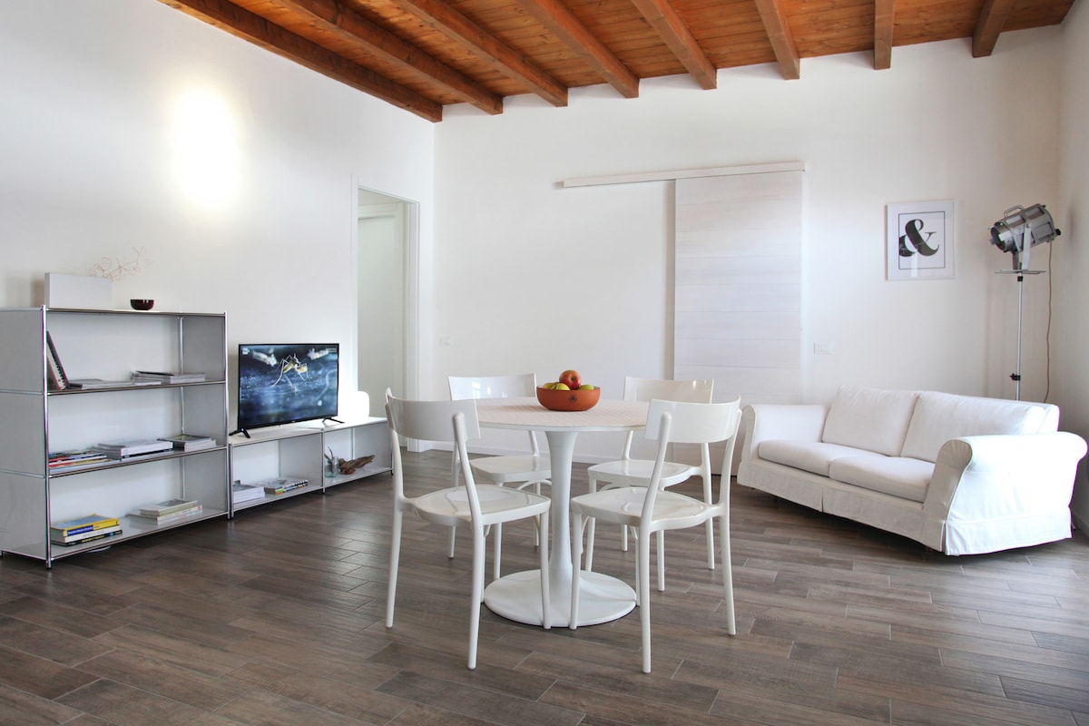Acogedor apartamento en la planta baja en la villa Sanzio25, con un porche perfecto para relajarse o cenar al aire libre. Situado en una tranquila zona residencial de Merate (LC), es la base ideal para explorar el lago de Como, las montañas cercanas y los principales atractivos de la región. En una hora se puede llegar a Como (30 km), Bellagio (35 km), Milán (32 km), Bérgamo (18 km) y Lecco (18 km). Los anfitriones, que garantizan tanto el apoyo como la privacidad, viven arriba. Netflix y estacionamiento gratuito incluidos.