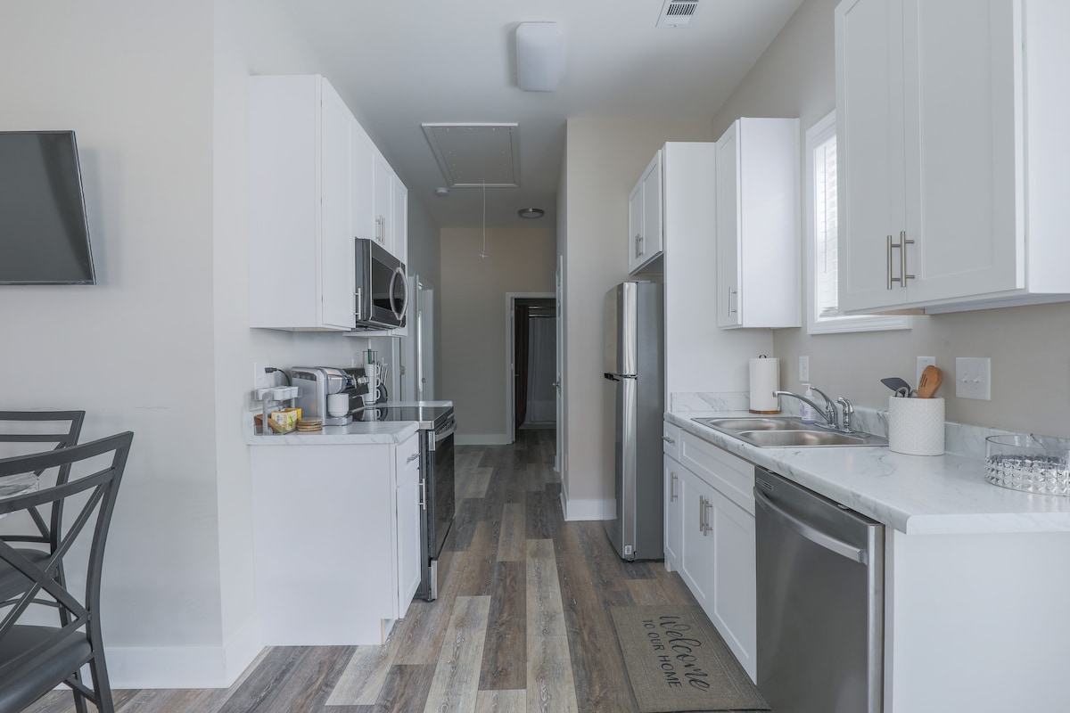 Walkable urban hideaway. Located in the heart of Atlanta, this modern 2‑bedroom home sleeps up to 6 and is just a short walk to Mercedes‑Benz Stadium, State Farm Arena and MARTA transit. The open kitchen and living room are perfect for game‑day gatherings. Two comfy bedrooms, updated bathrooms and high‑speed Wi‑Fi make it ideal for families or business travelers. With ★ 4.9 rating and nearly 200 reviews, it consistently ranks high—book ahead for major concerts and sporting events.