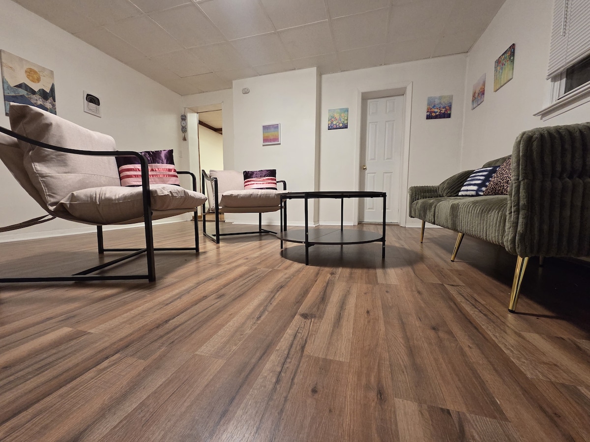 Casa de dos dormitorios en un tranquilo callejón sin salida en Ewing NJ. Dormitorio 1: cama tamaño completo Habitación 2: cama individual Sala: sofá cama de tamaño completo. Comedor de la cocina incluye: Wi-Fi Amazon Prime, Netflix. Entrada privada a minutos de varios restaurantes, pizzerías, otros restaurantes locales, Shop Rite, CVS, Walgreens, etc. A 5 minutos del College of New Jersey. A 20 minutos de la Universidad de Princeton. 15 minutos a Sesame Place. A 10 minutos de los terrenos de escultura A 30 minutos de Six Flags