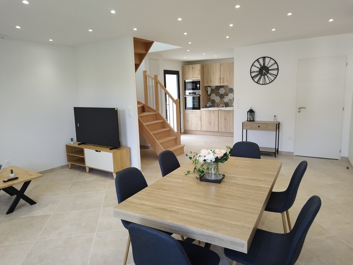 Reúnase con la familia en este alojamiento elegante a dos pasos del centro de la ciudad de Soissons en una calle tranquila y cerca de las tiendas (5 minutos a pie). La Citadine tiene una suite principal con cama de 160x200 y baño con ducha. Un dormitorio en el lado del jardín con una cama de 140x200 y un tercer dormitorio con 2 camas de 90x190. Un segundo baño con ducha italiana le espera en la planta baja. Equipamiento: 2 TV, lavadora secadora, plancha exterior, lavavajillas, secador de pelo