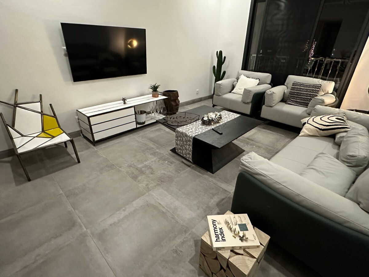 Olvídese de sus preocupaciones en este suntuoso apartamento situado en el cuarto piso con ascensor en una residencia segura. Su impresionante decoración le hará disfrutar de su estancia con total comodidad. El apartamento está totalmente climatizado, equipado con dos amplios salones, Smart TV 4K, fibra óptica, Netflix, Canal, servicio de vigilancia las 24 horas. Se puede poner a su disposición una furgoneta de alquiler para sus traslados al aeropuerto, pero también para sus desplazamientos.