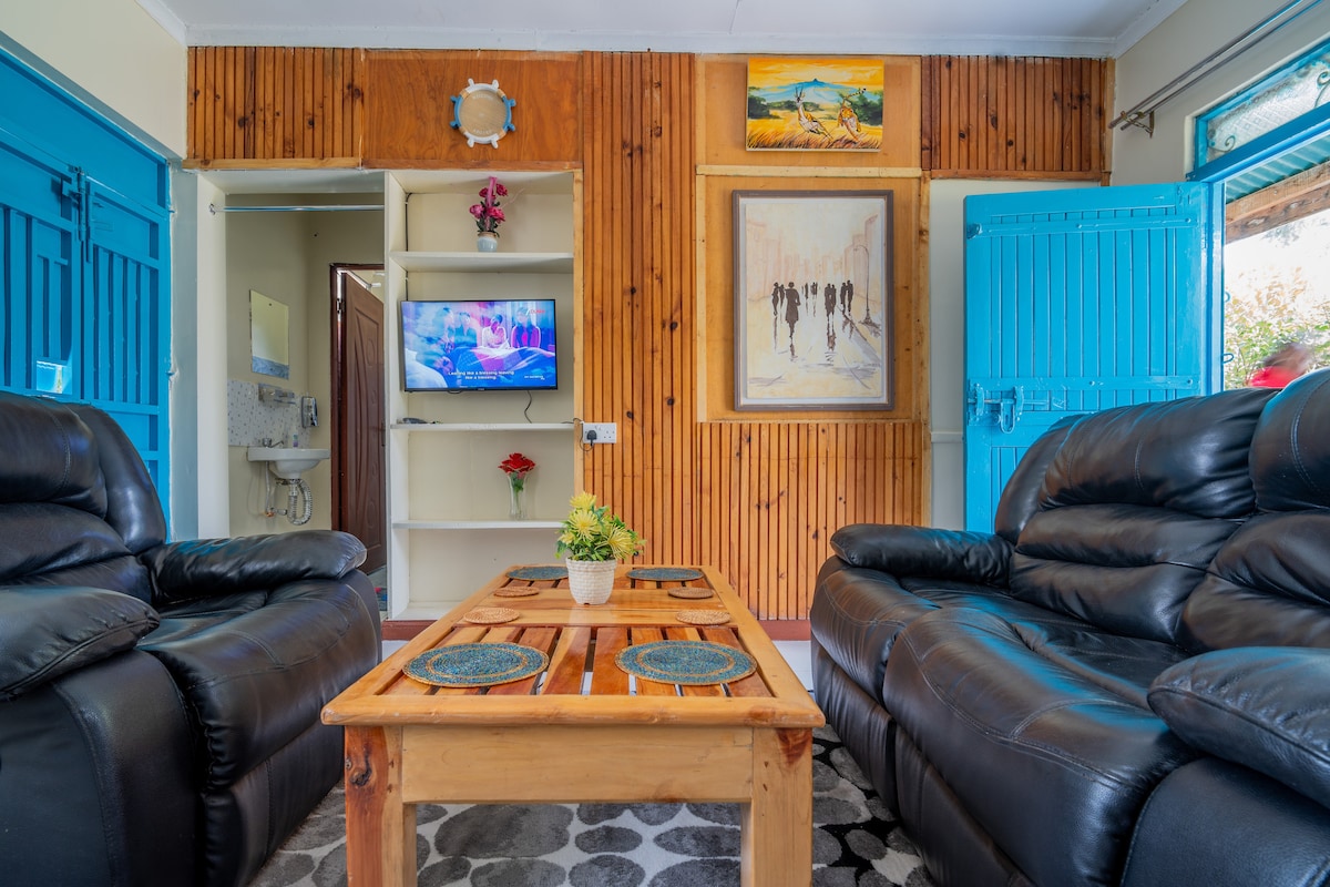 Relájate con toda la familia en este lugar tranquilo para hospedarte. Esta casa de 3 dormitorios bellamente mantenida ofrece todos los dormitorios con baño para la máxima comodidad y privacidad, además de un alojamiento separado para el personal (DSQ) para mayor flexibilidad. Tanto si viajas en familia como en grupo, apreciarás el diseño espacioso y el ambiente cálido y acogedor. Disfruta de un complejo sereno perfecto para que los niños corran o un café tranquilo por la mañana mientras te sumerges en el sol de la mañana de Nanyuki y el aire fresco.