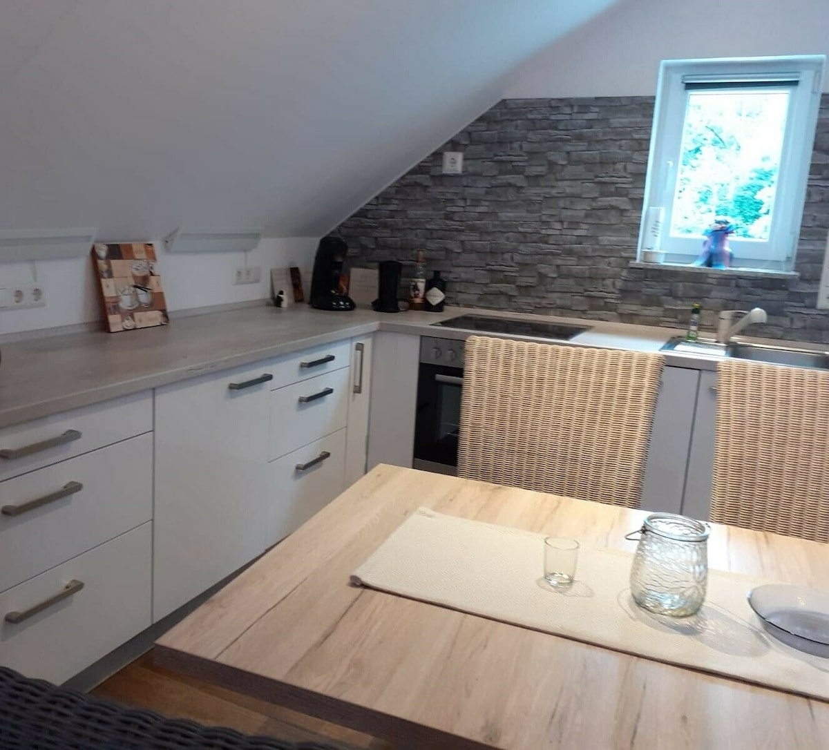 Apartamento de 82 m² con entrada independiente, cocina totalmente equipada, lavadora, secadora, TV, WiFi y mesa de billar. Un jacuzzi directamente en la terraza con barbacoa, solo para los huéspedes de vacaciones. Muy privado y sin ser visto. Ideal para turistas, familias con niños, trabajadores extranjeros, motociclistas y excursionistas. ¡El sendero de bicicleta de montaña comienza justo en la puerta de entrada! Se admiten perros de tamaño mediano Situado en una zona muy tranquila en el bosque del Palatinado. Comercios y parada de autobús a poca distancia a pie.