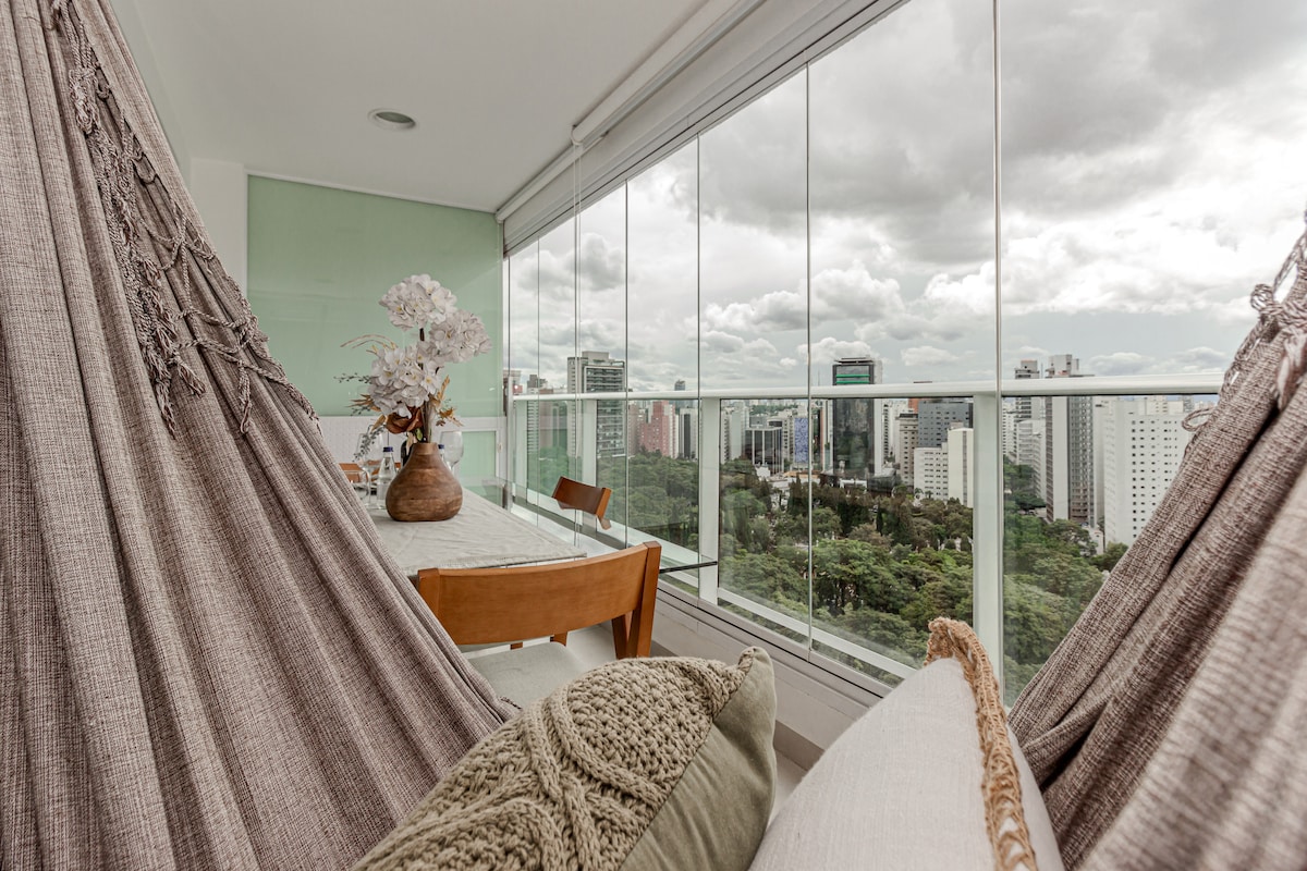 Vista 180° cerca Av. Paulista, Piscina y Garaje