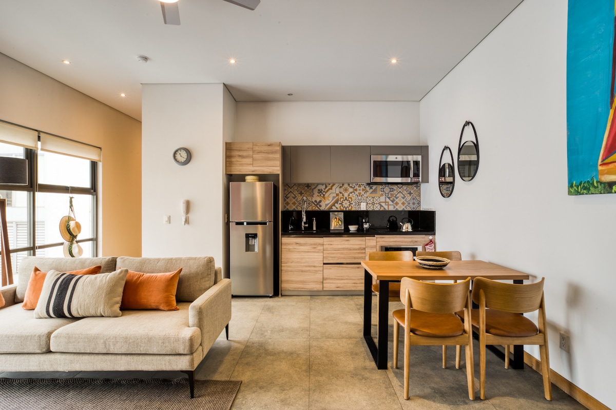 Este elegante depa combina el estilo Brooklyn con el encanto de CDMX: muros de ladrillo rojo, acero negro y un diseño acogedor. Disfruta de una cómoda cama King, baño completo, cocina equipada y Smart TV. A solo pasos de Av. Álvaro Obregón, rodeado de cafés, librerías, galerías y vida nocturna. Estarás en el corazón de Roma Norte, con fácil acceso a Condesa y Reforma.