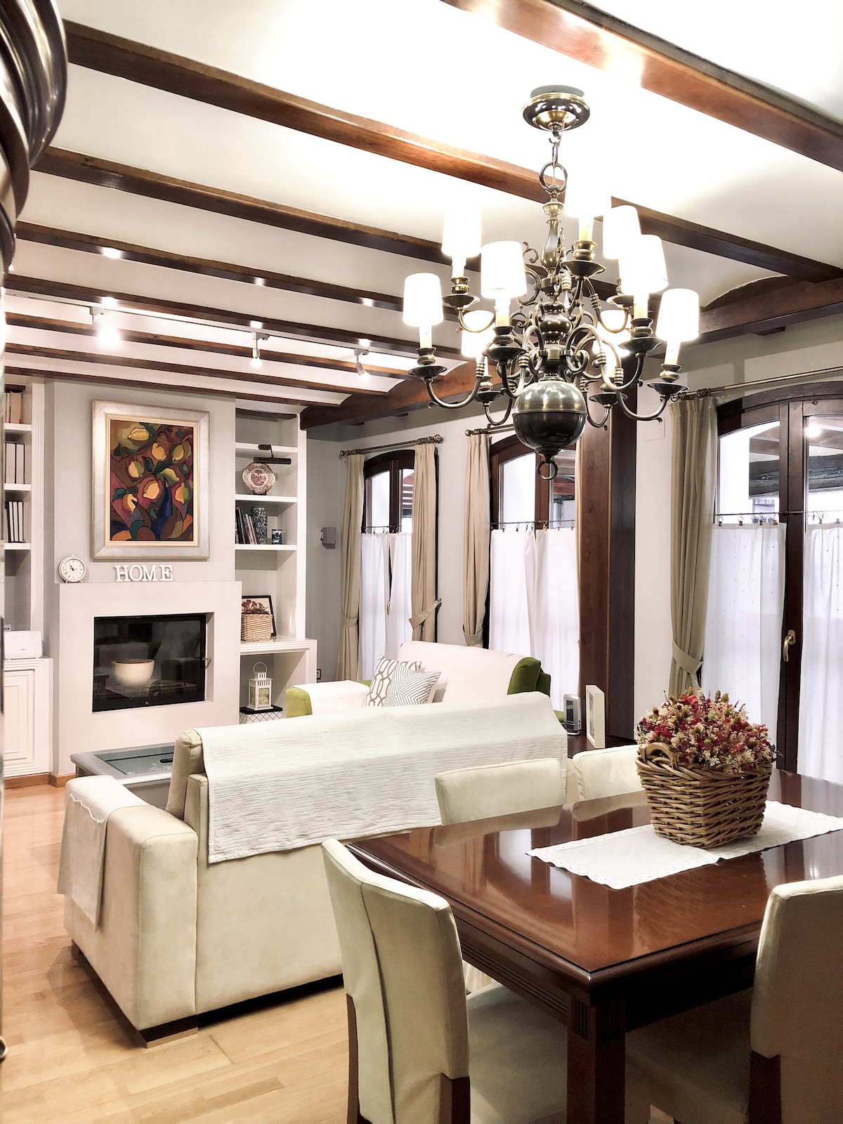 Gran loft con maravillosas vistas a la montaña y el Jardín Botánico del municipio. Es la planta de arriba de una casona restaurada de principios del S. XVIII. El loft es abierto, tiene una zona con cama de matrimonio y dos terrazas, otra zona comedor con smart TV y sofás y otra zona con un sofá-cama doble. Además tiene baño con ducha y un altillo al que se accede por una escalera espectacular en el que está la cocina, completamente equipada y con zona de comer Ideal para una o dos parejas.