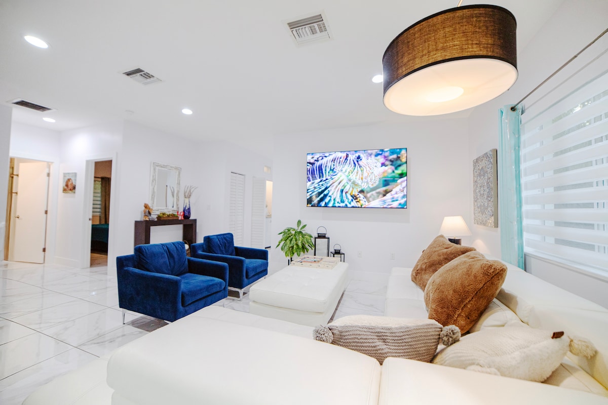 ¡Ven a crear recuerdos en 3/2! ¡2 camas tamaño king, 1 cama tamaño queen y 1 cama individual! ¡Una casa espaciosa con comodidades modernas cerca de todos los lugares turísticos de Miami! Muy cerca de las prestigiosas Coral Gables, la Universidad de Miami, la piscina veneciana, el centro de Miami y South Beach. ¡El lugar está a una manzana del centro comercial y de muchos restaurantes famosos!Esta casa fue construida en 2019, por lo que disfrutarás de todas las comodidades de una casa de diseño moderno. También hay un jacuzzi de agua salada para que se relajen 8 personas.