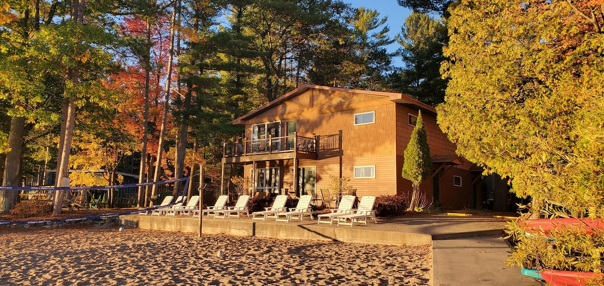¡Alquiler vacacional frente a la playa en Onekama con balcón!