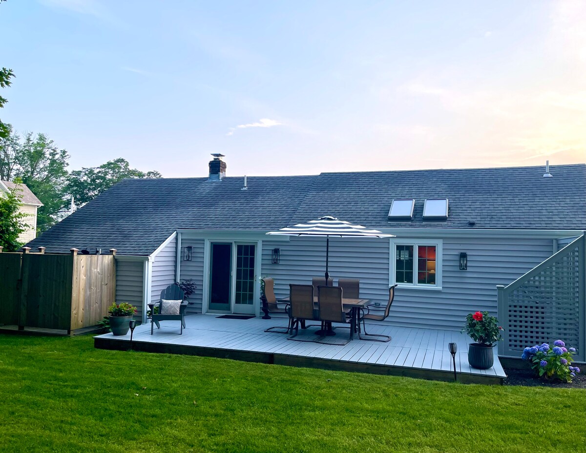 Casa de estilo saltbox junto al mar, chimenea acogedora, patio grande