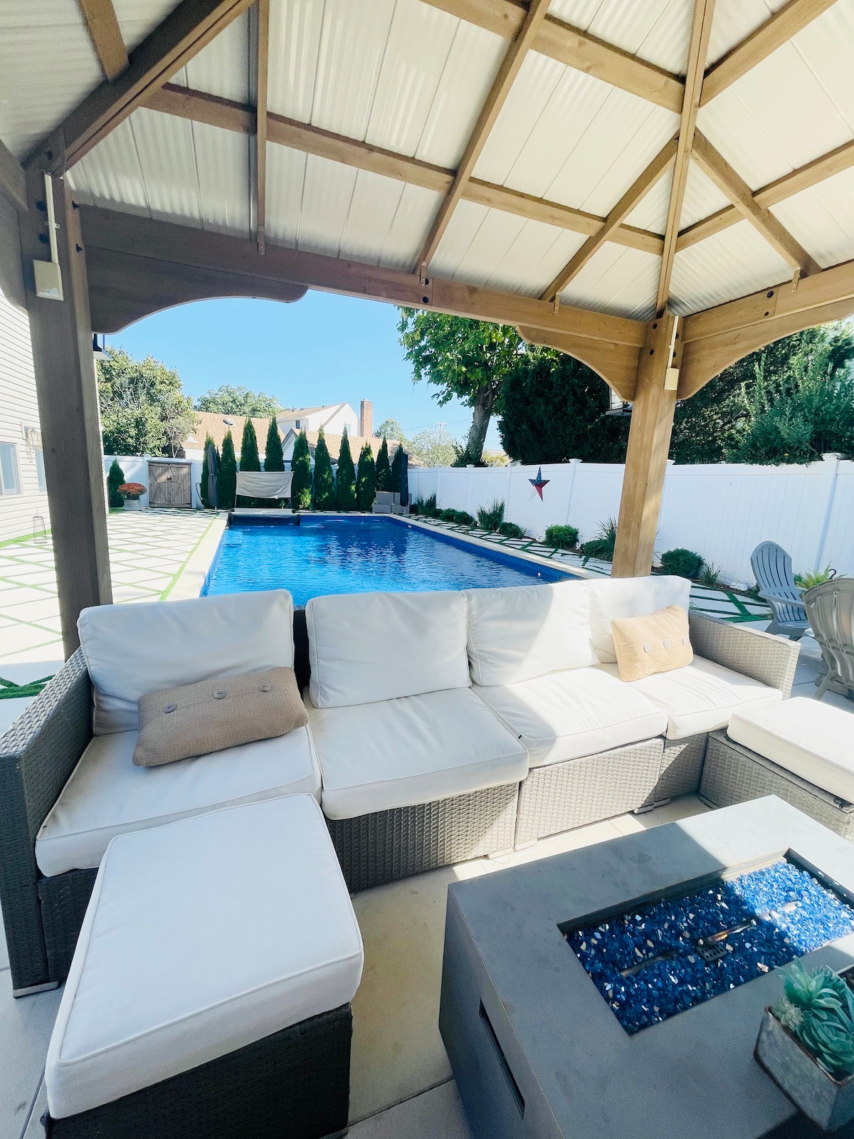 El espacio está en la planta baja de unos 600 pies cuadrados. Lo mejor es que está justo al lado de la piscina subterránea. La piscina tiene 4-7 pies de profundidad con una zona de estar. En la planta baja tenemos una cocina recién renovada (sin horno), con capacidad para 6-7 personas, una pequeña mesa para cenar, un televisor de pantalla plana, un sofá seccional y un baño completo. El dormitorio de la planta baja tiene unos 600 pies cuadrados. En el dormitorio encontrarás dos camas de espuma viscoelástica tamaño queen con sábanas de primera línea. Admitimos mascotas con una tarifa por mascotas de $ 75.