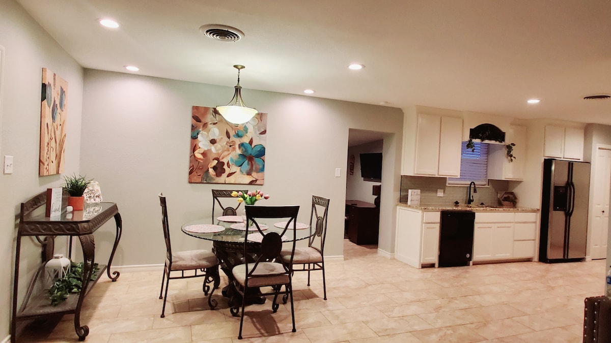 Bienvenido a nuestra casita en el corazón de West Texas, un lugar pensado para que te sientas como en casa. Disfruta de un ambiente rústico y acogedor, relájate con un buen café en nuestra barra, diviértete en la mesa de billar o desconéctate en el solárium. Estamos en una zona tranquila, a pocos minutos del Mall, restaurantes y HEB, para que tengas todo a tu alcance. Nos encantará recibirte y hacer que tu estancia sea especial.