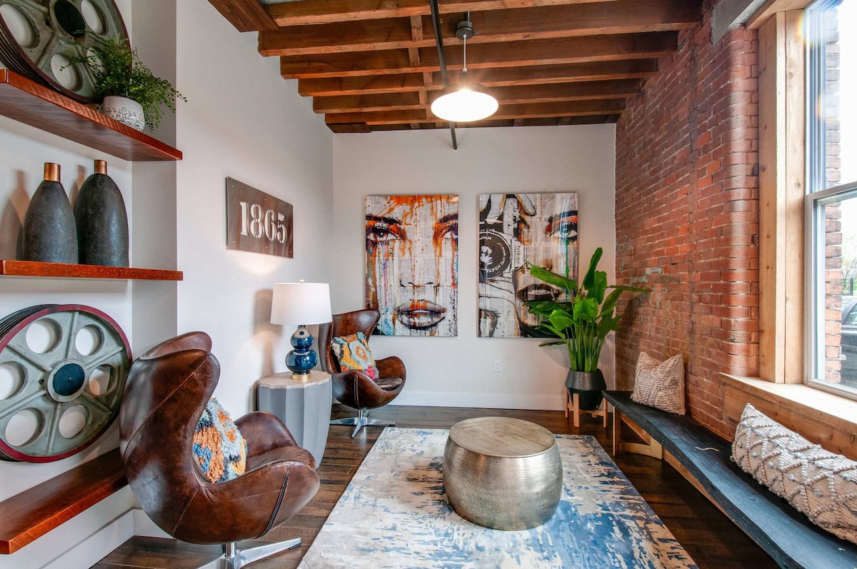 ¡Da la bienvenida al departamento loft de 1865 en Nashville! Un edificio histórico de 150 años de antigüedad convertido de un antiguo granero de tabaco en condominios rústicos. Te van a encantar los servicios que incluyen piscina; bar al aire libre; terraza de observación en el cuarto piso. ¡La ubicación no se puede superar! A menos de 2 millas de Broadway; a 1 milla de la Universidad de Vanderbilt, ubicada en el centro de la barata y la fila de música. El bar clandestino recientemente agregado en el sótano del edificio se sumará a tu disfrute. Es posible que haya un poco de ruido de bajo nivel.