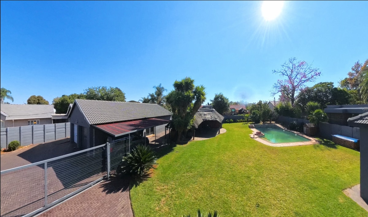 Esta casa de campo autónoma es de 1 cama, 1 baño, con salón y cocina americana. Tiene ventilador de techo, wifi, respuesta armada, TV con caja Android y su propia entrada y aparcamiento. Tiene el uso total de la piscina compartida, las áreas braai y la lavandería incluida [se puede organizar el planchado] Cuenta con su propia agua y estufa/horno de gas. AHORA EN ENERGÍA SOLAR PARA MOLESTIAS DE DESPRENDIMIENTO DE CARGA