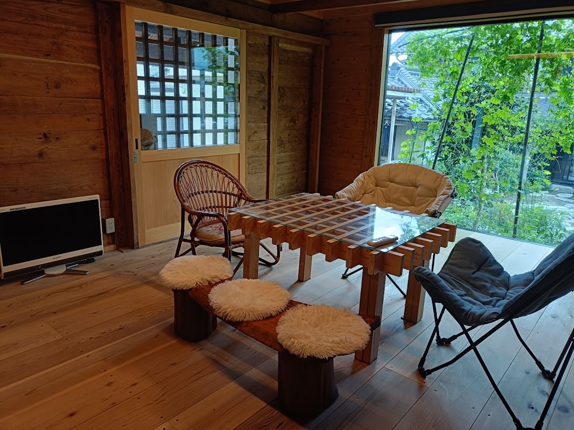 Esta es una posada privada que ha sido remodelada de una casa antigua con bricolaje. Ubicado en el borde de un pueblo frondoso, puedes disfrutar de experiencias extraordinarias como los interiores especiales del propietario, los baños de barril de vino y los sofás de larga duración. En el mismo sitio se encuentra una casa con techo de paja donde vive el propietario. Puedes relajarte en un espacio nostálgico y moderno que utiliza una escalera de caja antigua. Esta propiedad se puede utilizar para familias, grupos (máximo 6 personas). Por supuesto, 1 persona o 2 personas también son bienvenidas.