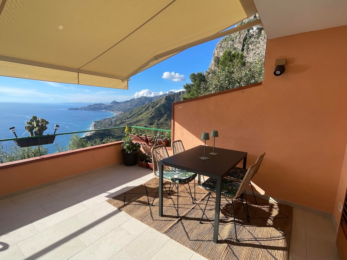 ¡Nuestro departamento se encuentra directamente en la playa! Taormina está a solo 15 minutos en auto de la casa. Tiene capacidad para 4 personas (un dormitorio y un cómodo sofá cama para 2, 2 baños), WiFI gratis. Disfrute de la playa privada y de las 2 extraordinarias terrazas con impresionantes vistas al mar y a Taormina. ¡También tenemos estacionamiento privado para nuestros huéspedes!