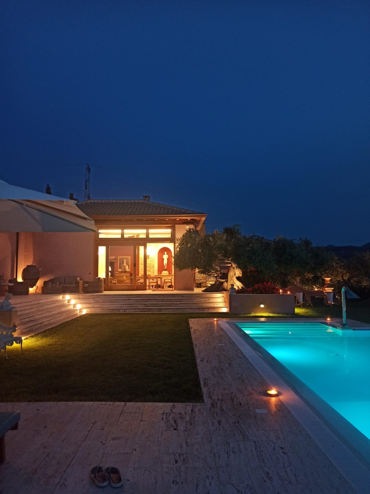 Villa situata sulle colline vicino Milazzo (Pace del Mela), in posizione isolata in contesto rurale, dotata di ampio salone con camino e cottura, due camere, un bagno. In adiacenza alla villa con accesso indipendente un'ulteriore camera con bagno. All'esterno ampia veranda arredata, giardino, zona piscina, campo polifunzionale per calcetto/basket.