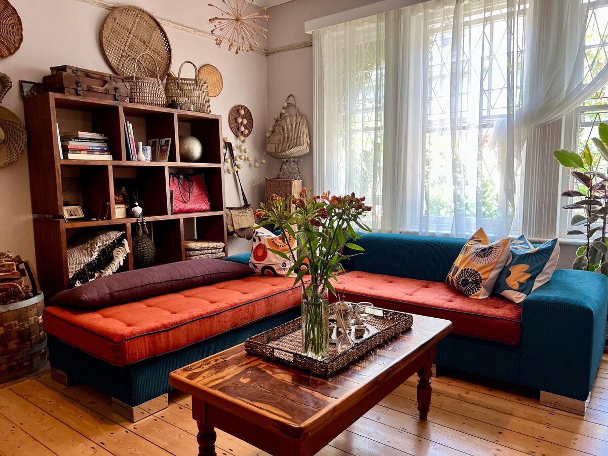 Ubicado sobre una casa patrimonial en el histórico Bo-Kaap, nuestro departamento penthouse a medida ofrece privacidad, estacionamiento, respaldo solar y vistas panorámicas de la Montaña de la Mesa, Lion's Head y la ciudad. En la amplia terraza hay sofás, una hamaca y una mesa de comedor. Internet rápido y múltiples estaciones de trabajo para el trabajo a distancia. Nuestro apartamento se encuentra en una zona tranquila, pero a poca distancia a pie de algunos de los mejores restaurantes, sitios y mercados de la ciudad, el paseo marítimo y rutas de senderismo en Signal Hill.
