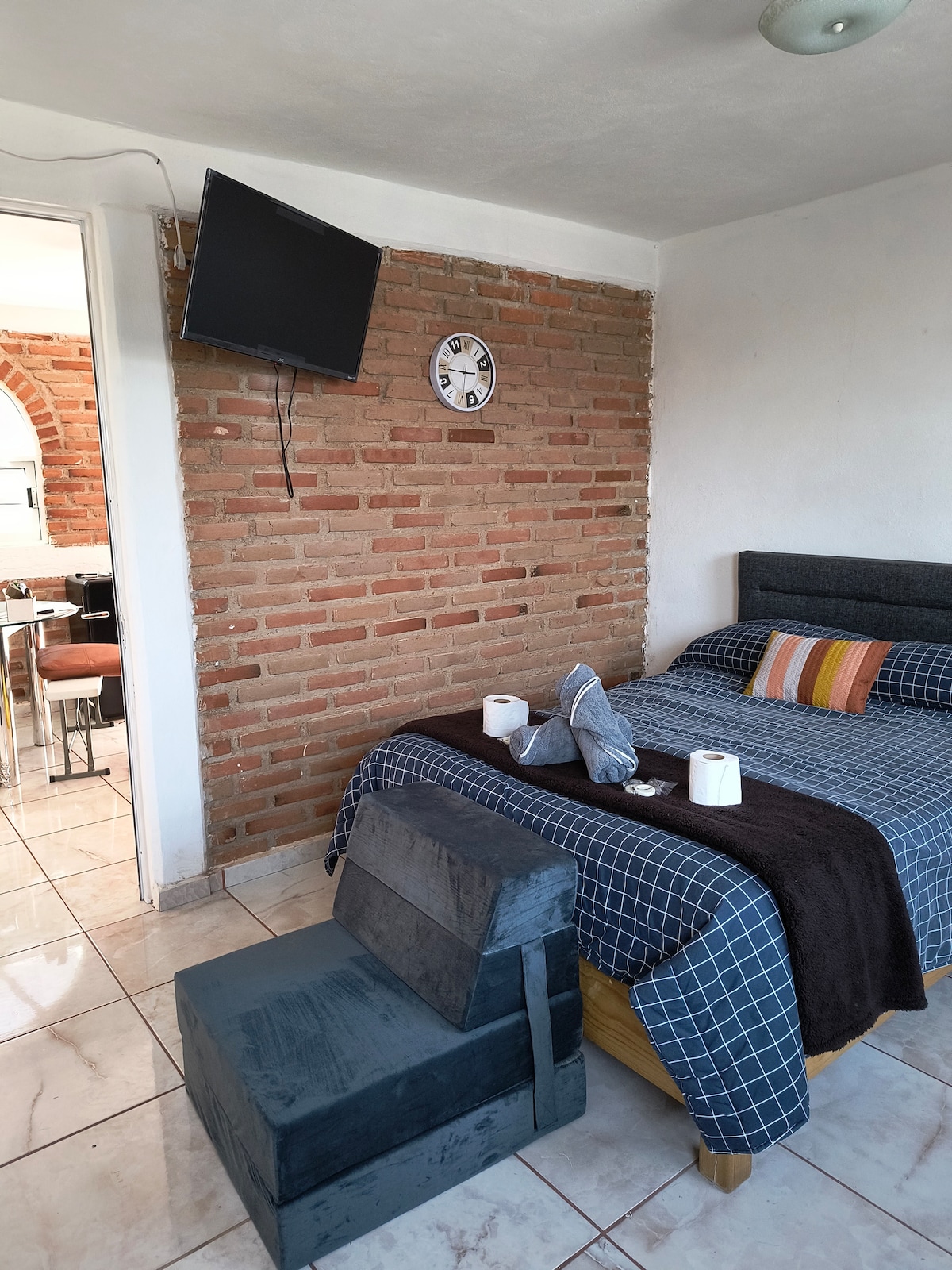 Ya no busques más. ahorra dinero con comodidad y seguridad Departamento de 2 recámara, con cama matrimonial, sofá cama en la sala, podría dormir una pareja, una cama individual alta que abajo tiene escritorio, o área de trabajo. Incluye impresora, trastes para cocinar y para comer, ropa de cama toallas, papel de baño, etc. Ideal para una pareja y un par de niños o compañeros de trabajo. Clóset amplio, cocina equipada, wifi. agua caliente 24/7 Ventilador, cable, Self check in.