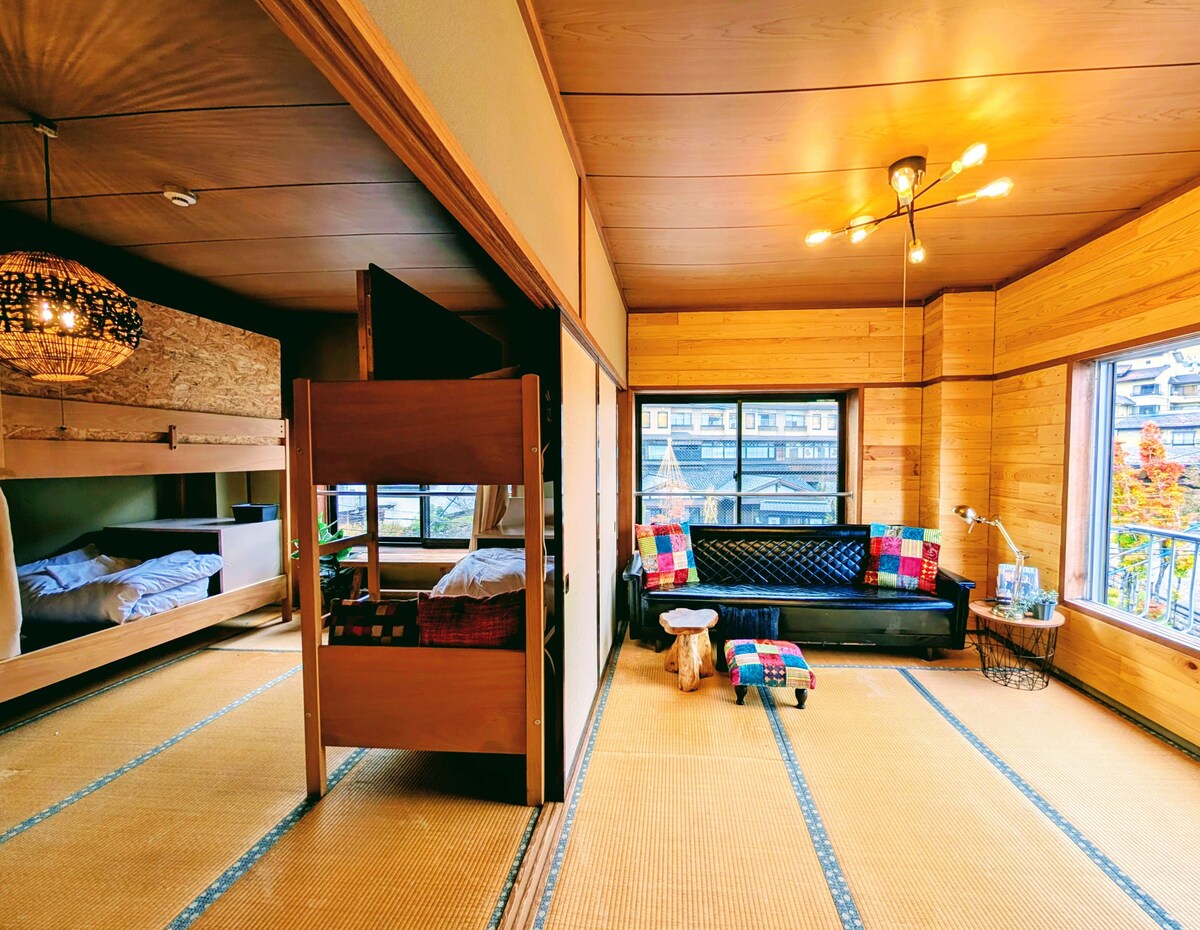 古民家の内装を全てリノベーションし、畳のぬくもりを感じる個性あふれる日本らしいお部屋になりました。 湯沢高原ロープウェイの目の前にありますので越後湯沢の観光に来られる際に最適なロケーションになっております。 お部屋は個室3室のご用意のうちの1室で静かにゆっくりとくつろげます。小グループから最大8名様まで(3部屋利用時)お泊りいただけます。 色の持つパワーを感じていただけるよう、とことんこだわって3色の楽しいお部屋に仕上げました。 湯沢が大好きで移住した宿主が湯沢の街情報をシェアし、思い出に残る旅行になりますようおもてなしさせていただきます。