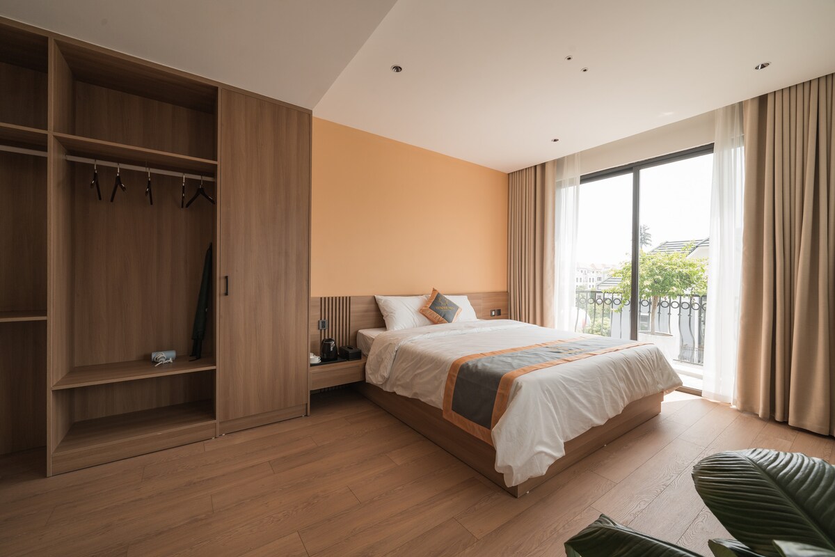 El interior de la casa – Japandi 2BR es un apartamento cálido y bien equilibrado diseñado para huéspedes que planean quedarse más de una o dos noches. Con luz natural, interiores de madera y una estética Japandi tranquila, este espacio está hecho para vivir suavemente, sin apresurarse a entrar y salir. El departamento es especialmente adecuado para parejas, familias pequeñas o profesionales que se alojen durante una semana o más y que valoren la simplicidad, la comodidad y la tranquilidad.