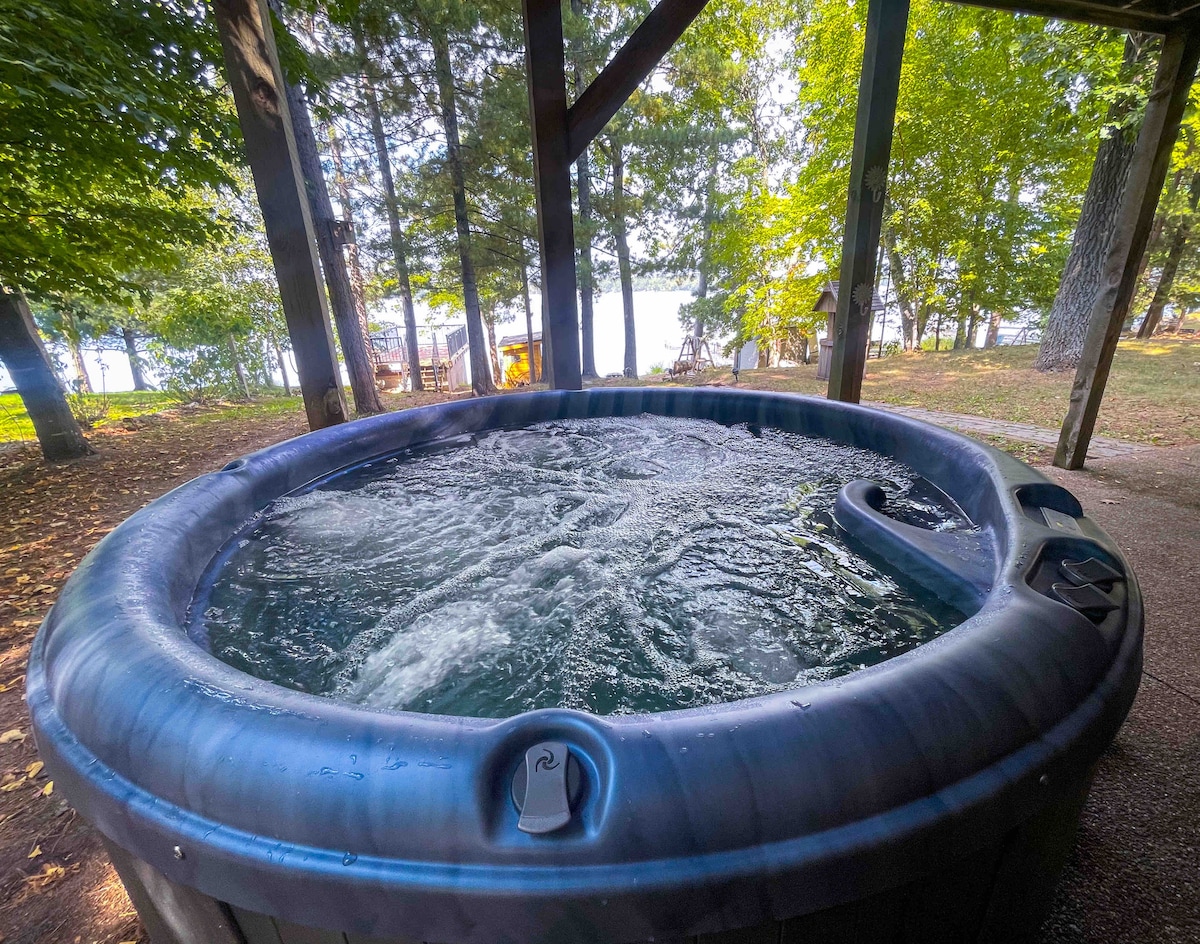 Retírate a Leisure Lodge, a 2 horas de MSP o Fargo: • 4 camas tamaño king, 4 camas individuales XL, cama tamaño queen extraíble, cuna portátil • 3 baños (uno en cada nivel) • Cocina totalmente abastecida con comedor interior y exterior para más de 10 personas. • Amplia casa durante todo el año con estacionamiento en garaje interior, no una cabaña de temporada. • Jacuzzi + fogata con leña incluida • Barco de remos, kayaks, juguetes para el lago y senderos cercanos • Acogedora chimenea de gas y vistas al lago. • Más de 130 evaluaciones de 5 ⭐️, de propiedad y gestión familiar • Muelle de temporada desde finales de primavera hasta otoño