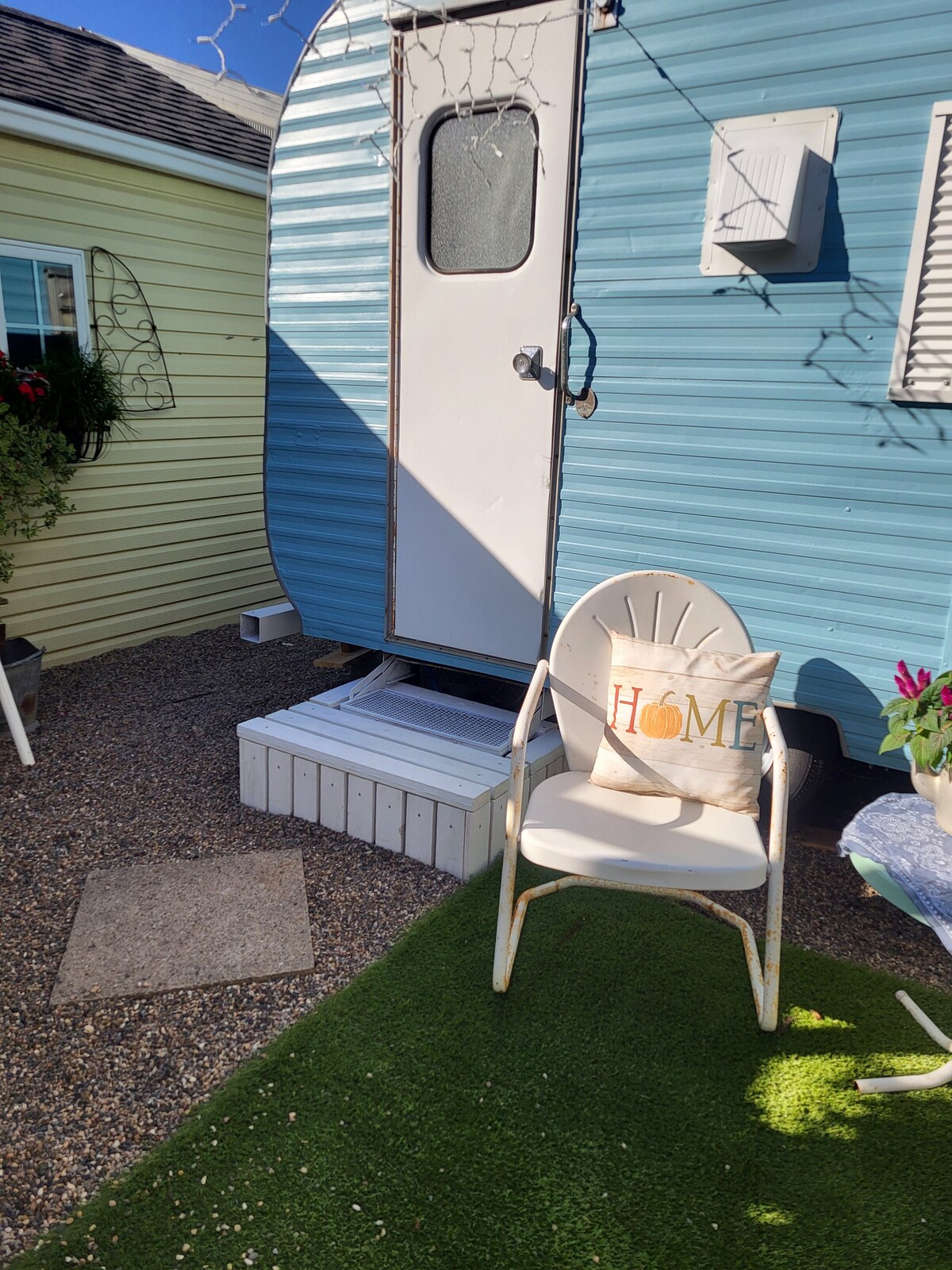 Este lugar inolvidable es de todo menos ordinario. ¡Cámper Trail Blazer 1961 remodelado para ti! Área cerrada que se abre a flores y jardines. Una Twin XL que se puede convertir en una 86Lx. Inodoro de compost en el baño de la casa rodante o en el baño principal para usar. Calefacción y aire acondicionado. Fregadero de cocina, placa calefactora, microondas, nevera y utensilios. Protector de película para uso interior o exterior. Mural de sauce y una cornisa de un centavo para la singularidad. Fogata, cabaña y muchas áreas de estar en los jardines.