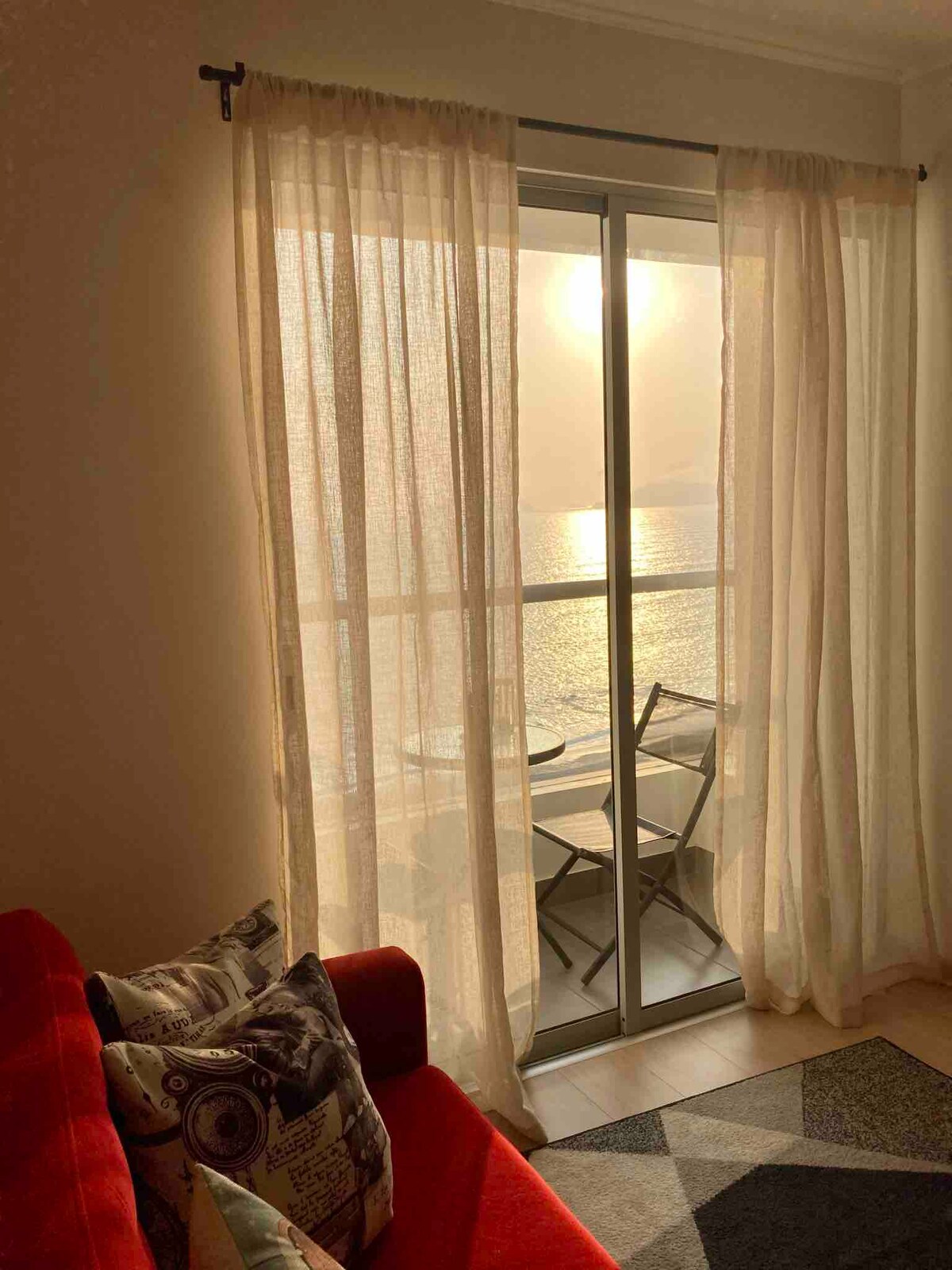 Gran apartamento con increíbles vistas al mar y al atardecer.