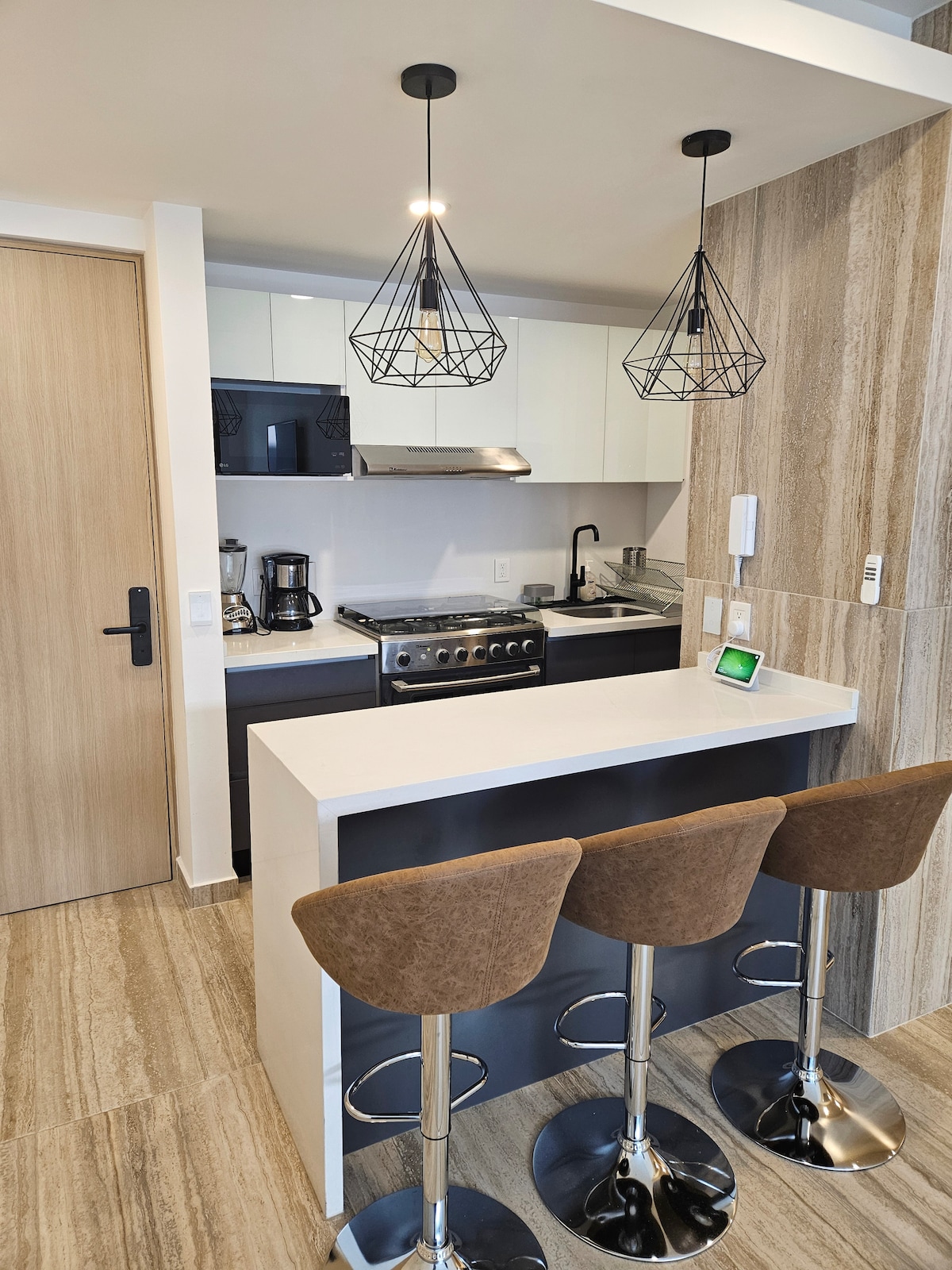 Este moderno departamento en Roma Norte es ideal para nómadas digitales: cuenta con Wi-Fi ultrarrápido, espacios de trabajo cómodos y se ubica a pasos de los cafés, restaurantes y vida nocturna más trendy de Condesa. Disfruta de amenidades de primer nivel: un centro de negocios, un gimnasio completo, una sala de juegos y un rooftop con vistas espectaculares. Mantente productivo, inspirado y vive CDMX como un local.