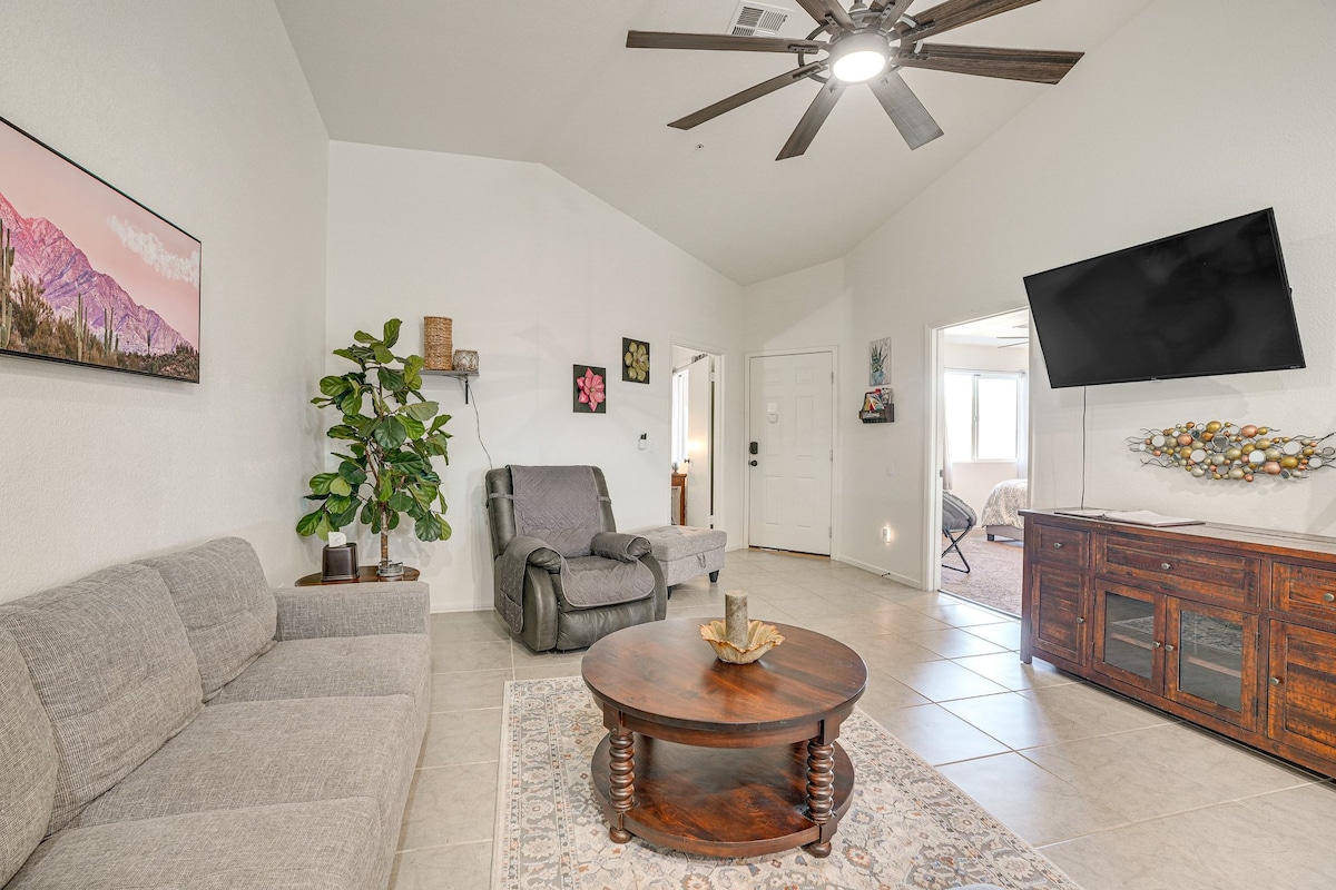 Relax, recharge, and enjoy the sun at this centrally located Yuma Foothills getaway- perfect for winter visitors, golf trips, families, and travelers wanting quick access to hiking and sand dunes. Also, this charming home is only 20 minutes away from river access. Located in a quiet neighborhood east of town, this newly furnished home offers comfortable modern living with everything you need for a short stay or an extending visit. Dogs welcome with an additional fee.