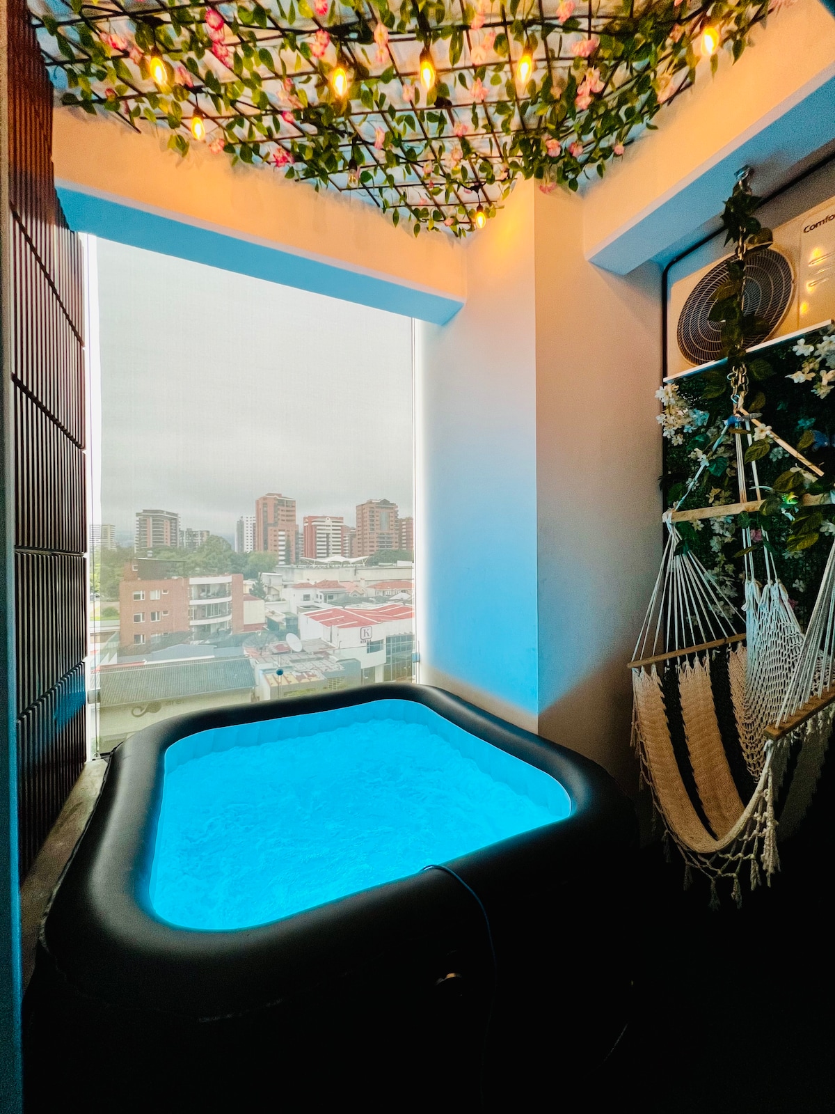 Relájate en este espacio tan tranquilo y elegante. Disfruta de una experiencia con estilo en este alojamiento en la mejor area de la ciudad, a pocos metros del aeropuerto. Con un balcon con jacuzzi y chimenea, nuestra suite de lujo tiene una vista impresionante a la ciudad. Es una muy buena opcion para ti para quedarte, tiene un estilo moderno, area para home office, nunca te aburriras mientras trabajas, conocelo!!