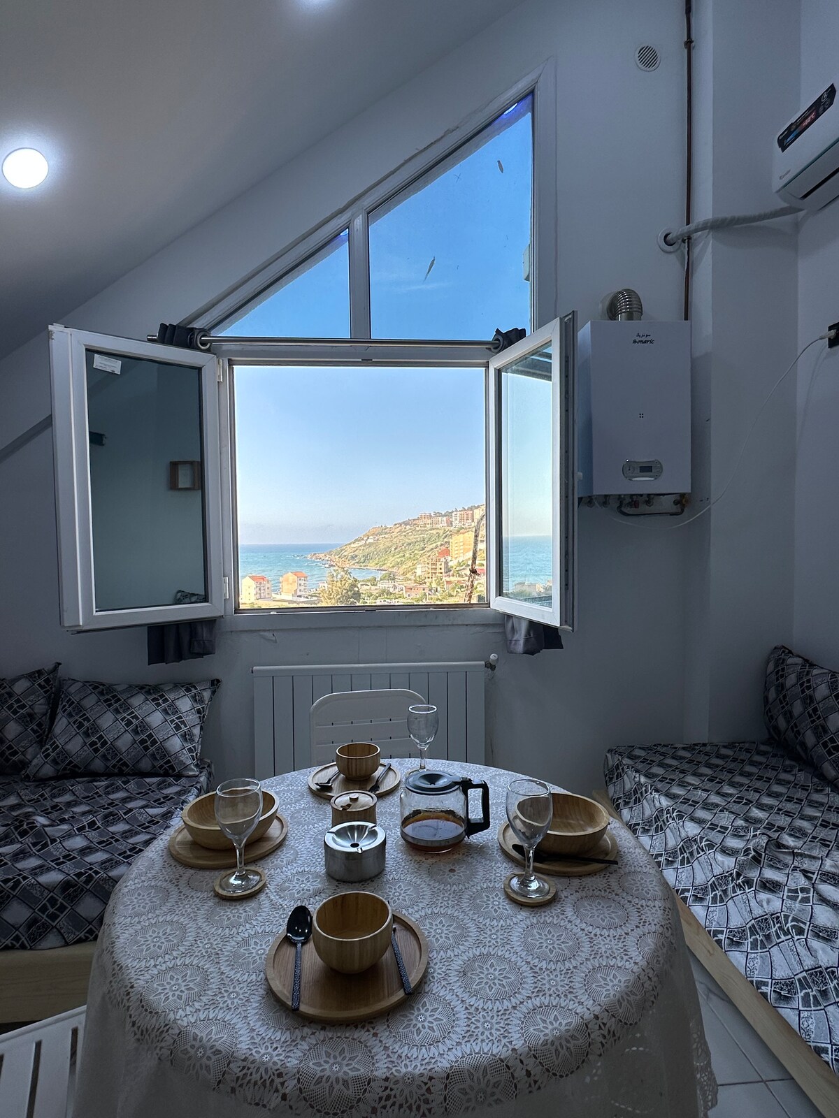 Magnificent duplex for vacation 200m from the Bengut lighthouse and sea. an outing to visit the old casbah of Dellys and the old port offered by us. possibility of sending an accomodation certificate for facilite your visa and reservation. Possibility of reception at the airport 15 eur. possibility to benefit from special offer. 01 couscous will be served to you by the house during your stay. PS: we only accept individuals, families or married couples or friends of the same sex, thanks.