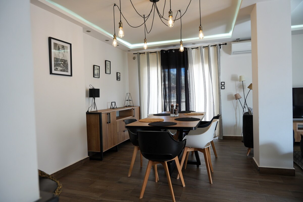 Détendez-vous dans ce logement calme et élégant,en vous accueille dans une décoration Sobre et chic avec toutes les commodités absolues, chauffage centrale, climatisation, cuisine équipée, eau h24 avec citerne, endroit calme et sécuritaire à 10 mn de marche du centre ville, accessible au restaurant et divers commerces.