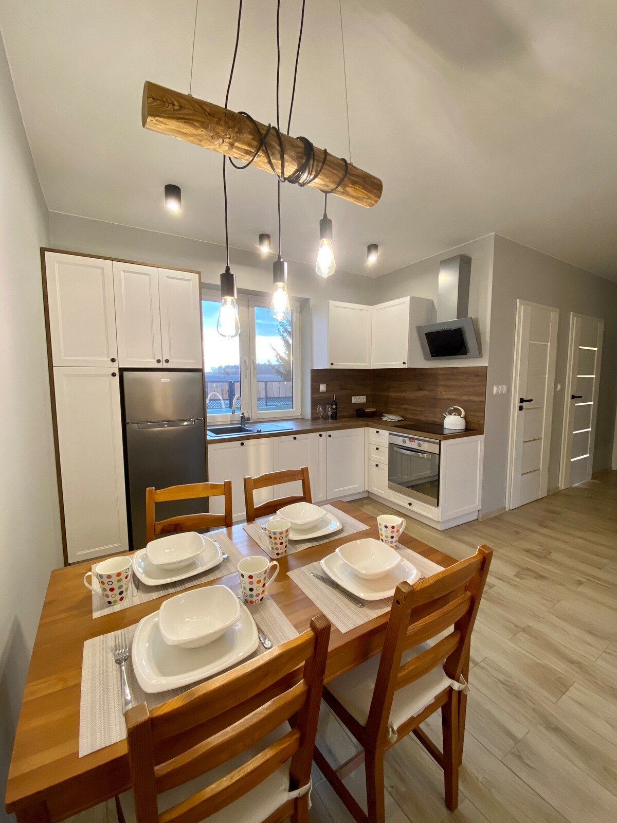 Ta nowoczesna interpretacja tradycyjnej stodoły łączy w sobie rustykalny urok z funkcjonalnym designem, oferująca przestronną, przytulną przestrzeń. Apartament obejmuje powierzchnię 100m2 Taras z widokiem na zachód słońca z wyjściem na nowoczesny ogród Do dyspozycji klienta jest sauna, basen odkryty oraz grill, które znajdują się na ogrodzie Idealny na spacery oraz przejażdżki rowerami las, który jest oddalony o 1 km od domku Jest to Idealne miejsce na odpoczynek i relaks.