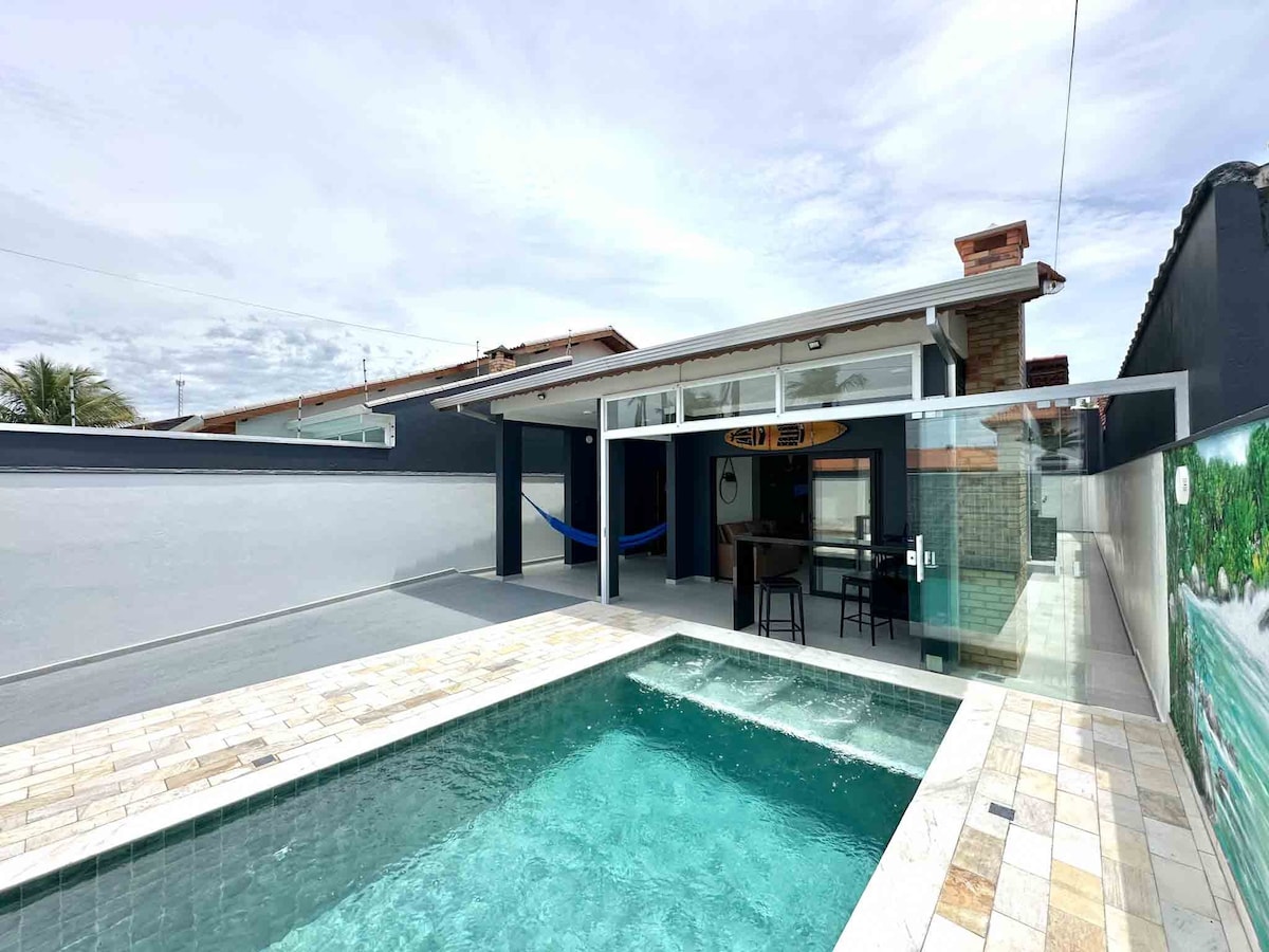 Espacio privado para huéspedes, piscina con cascada, baño con ducha caliente, ducha fría junto a la piscina, nevera, estufa, horno eléctrico, sartén eléctrica, freidora de aire, platos y cubiertos, barbacoa y kit de barbacoa. Servimos porciones: camarones, calabresa, trozos de pollo, papas fritas, (no incluidos en la tarifa diaria) Calle privada, sin salida, pavimentada, a 10 minutos a pie de la playa. obs: el propietario vive en la casa principal, el edículo está reservado y es privado para los huéspedes. .