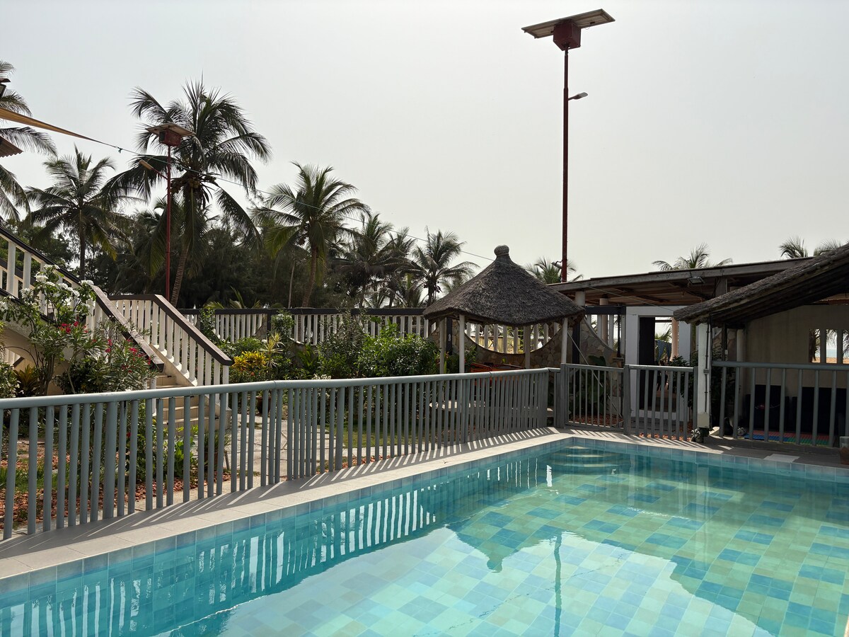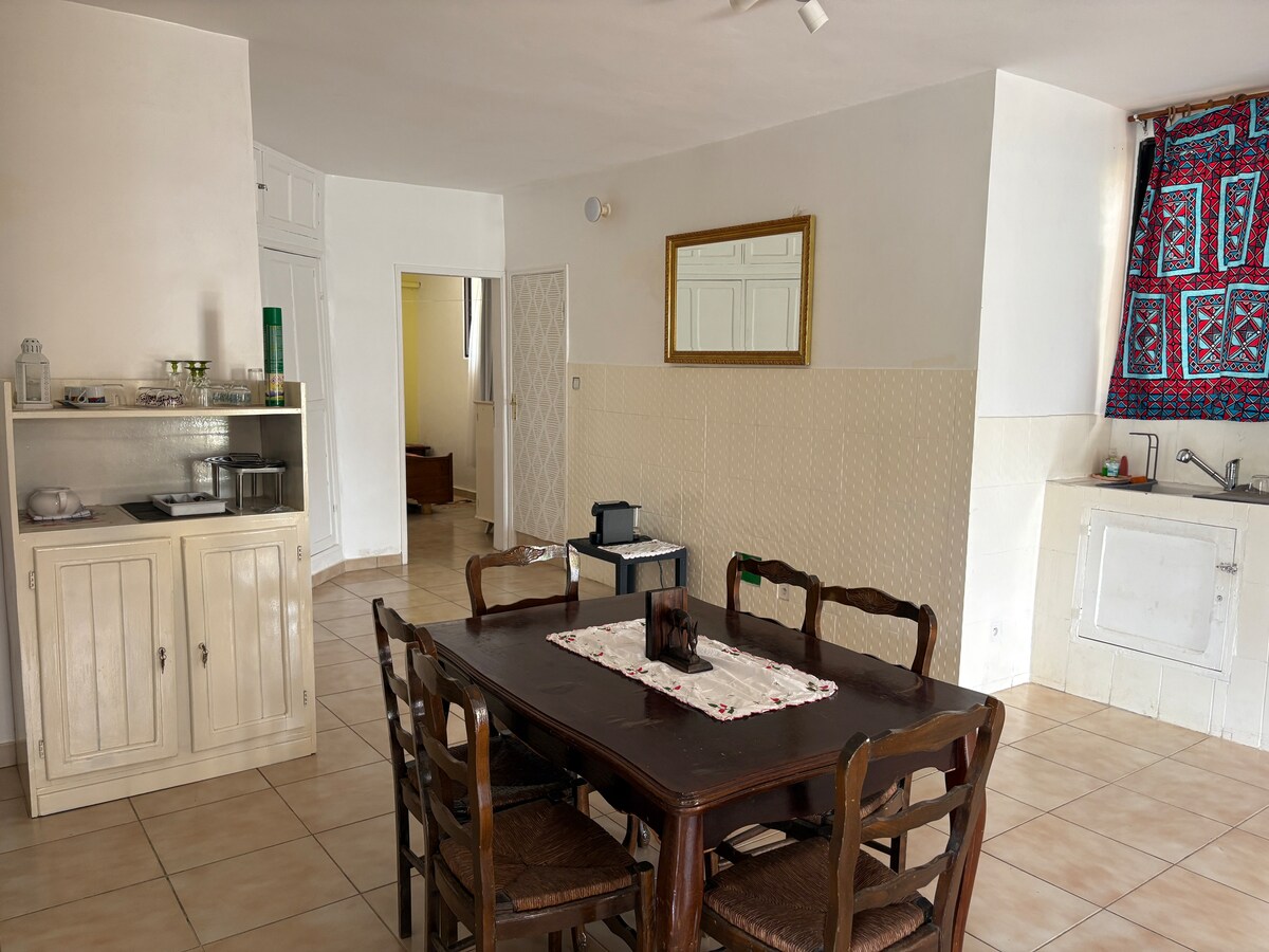 Un departamento de dos dormitorios (dormitorio, sala de estar, cocina y baño) con una buena ubicación junto a la Place de Nonvitcha en Grand-Popo. Aquí puedes vivir como un habitante más. El departamento tiene dos bicicletas renovadas en el verano de 2022 que se pueden utilizar. El precio por noche no incluye la electricidad, pero se paga por separado al medidor de electricidad.