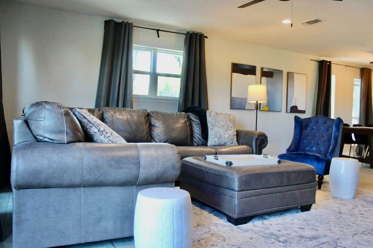 Welcome to your cozy, private retreat nestled just off Hwy 287/FM 1125 near Amon Carter Lake! This charming tiny home offers easy access and ample free parking—perfect for oversize vehicles and trailers. Inside, enjoy the convenience of a kitchenette where you can brew your morning coffee, reheat meals, or pop some microwavable popcorn. Relax on a leather sofa while watching a 50” Smart TV, and unwind in the adjustable Queen Tempur-Pedic bed for the perfect night’s sleep 😴