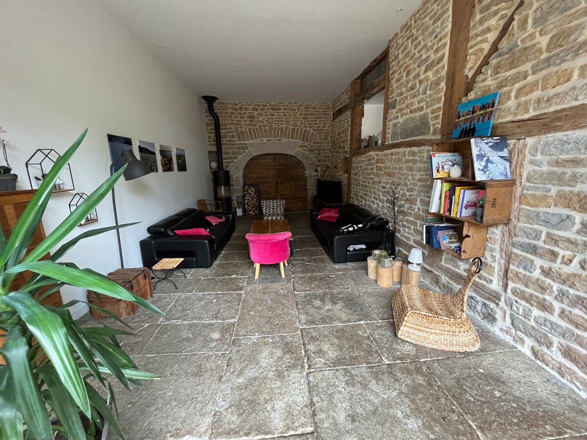 Le Pressoir** **, casa enólogo en el corazón de los viñedos del Jura. Casa rural con aire acondicionado y todas las comodidades, completamente renovada en 2023. Con capacidad para 6 personas, incluye en la planta baja una cocina totalmente equipada, un gran salón con estufa de leña, TV y espacio de lectura, lencería. Arriba, le esperan 3 habitaciones con encanto con 3 camas dobles de 160 y un gran baño. En el exterior se puede disfrutar de la tranquilidad del jardín y de la zona de comedor con una barbacoa de gas.