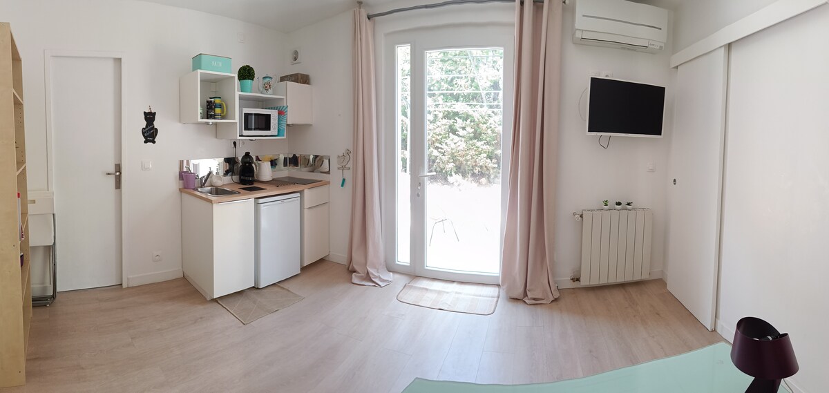 Je vous héberge dans ma villa au coeur des vignes et romarins, située dans le village de Montaud ! Un appartement de 28m2 indépendant composé d'une chambre, une salle d'eau, un salon donnant sur sa kitchenette tout équipée ! Tout le nécessaire se trouve sur place. Un espace extérieur vous permettra de profiter du soleil et faire quelques ploufs si l'envie vous en dit. Balades, randonnées, rivière, plage, visite de Châteaux, vous n'aurez plus qu'à venir passer un excellent séjour !