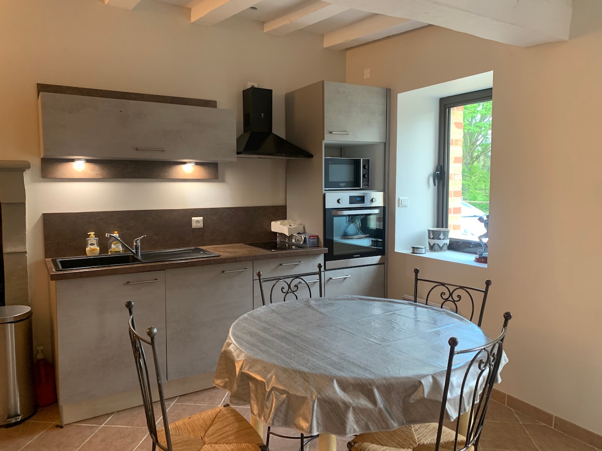 Détendez-vous dans ce logement calme et élégant. A l'étage d'une dépendance dans un cadre reposant. Simple, mais bien équipé, vous trouverez tout ce qu'il faut pour passer un agréable séjour. Un accès au jardin qui vous procurera, sérénité et quiétude.